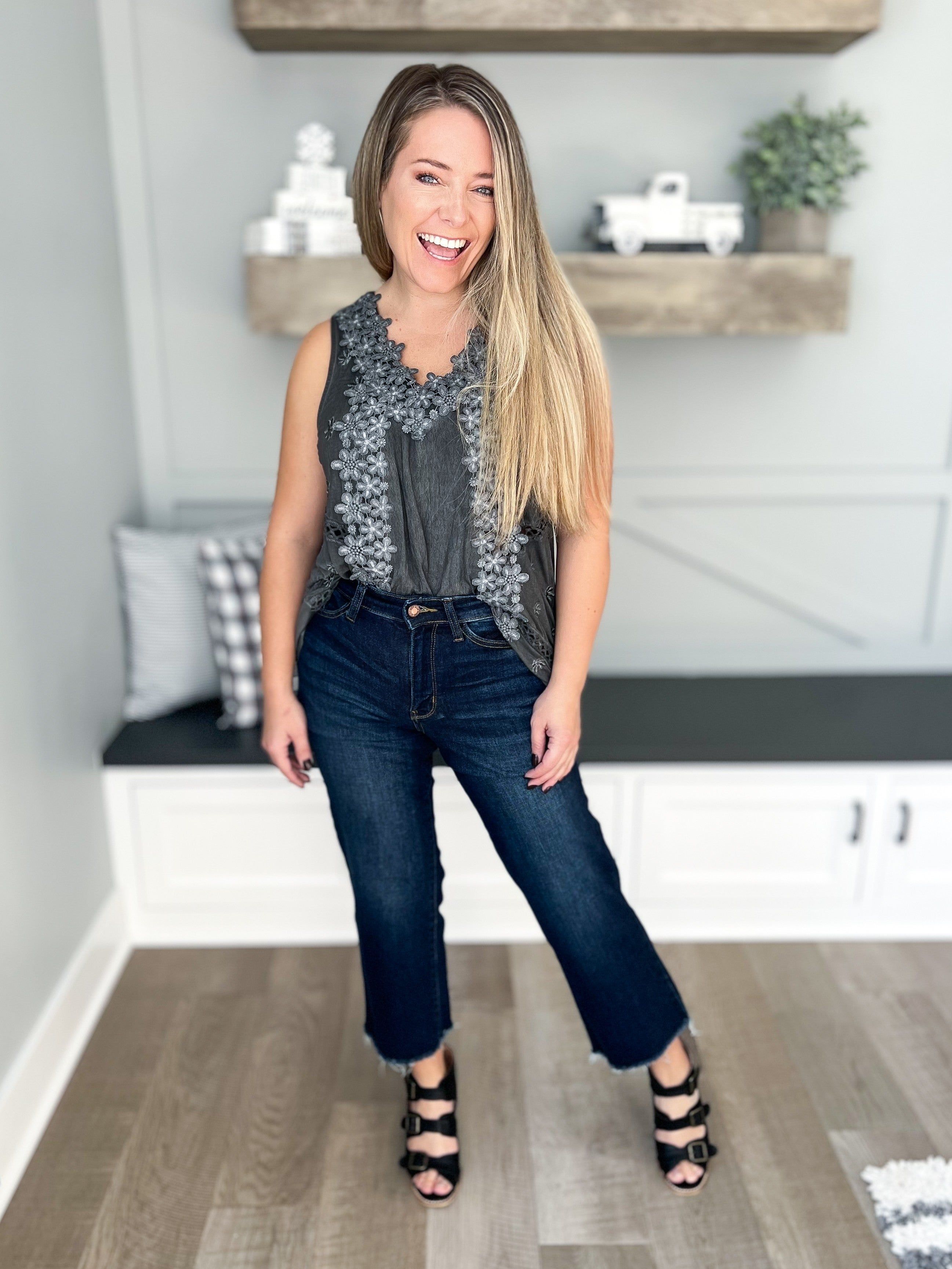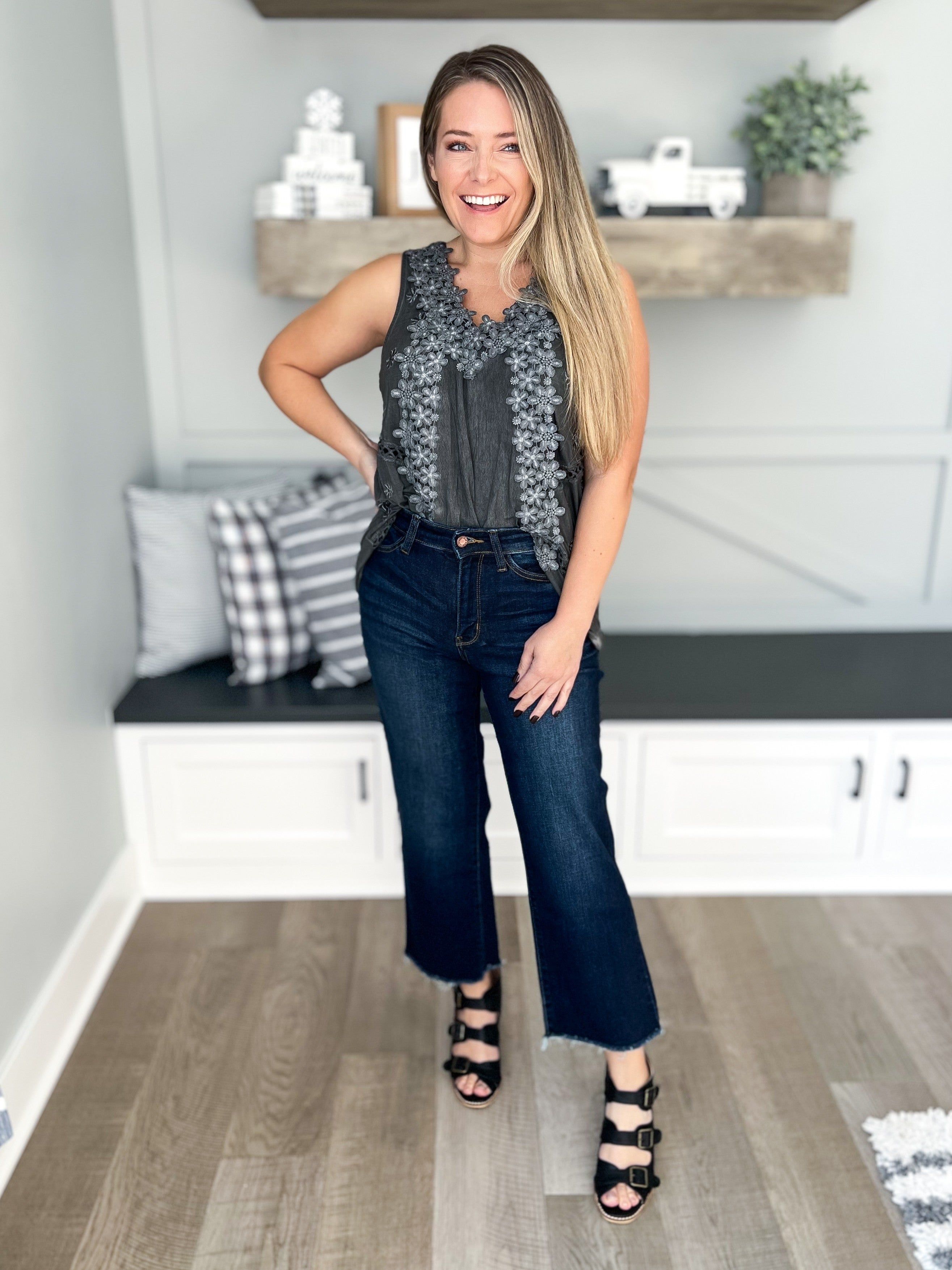 Coming In Hot - Judy Blue Cropped Wide Leg Jeans - Final Sale