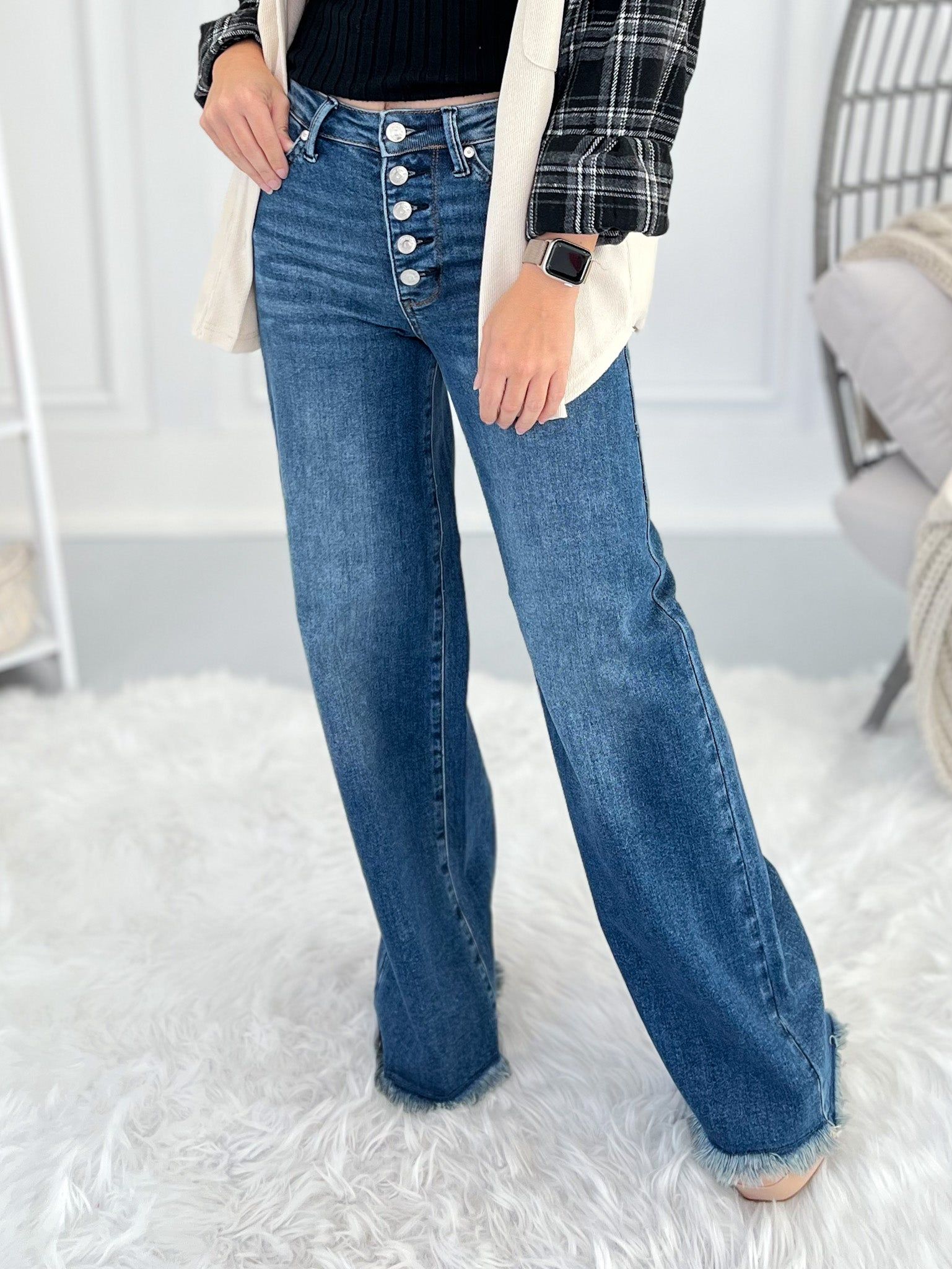 Fly By - Judy Blue Button Fly Column Straight Leg Jean