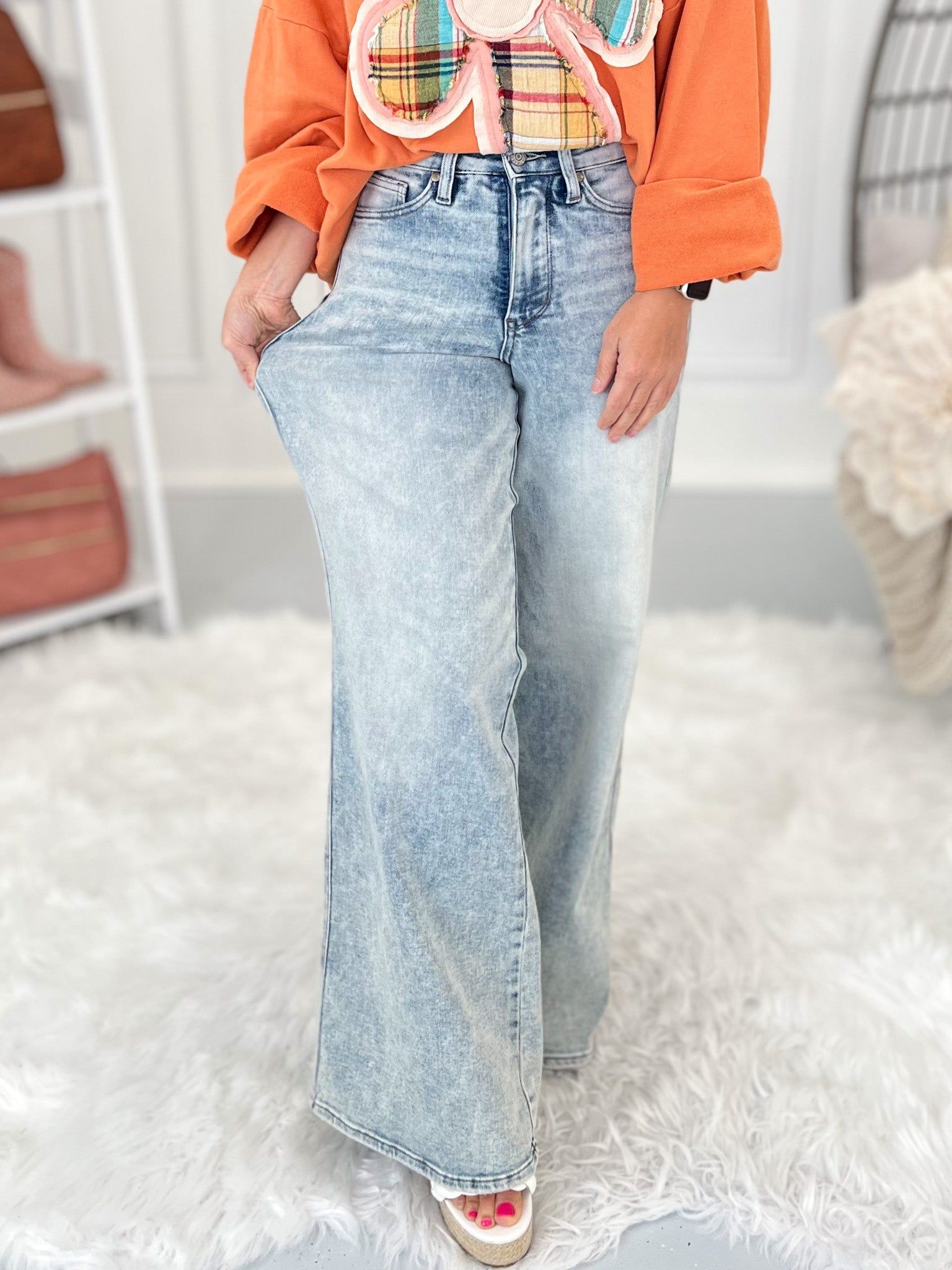 Blast From The Past - Judy Blue Tummy Control Retro Wide Leg Jean -Final Sale