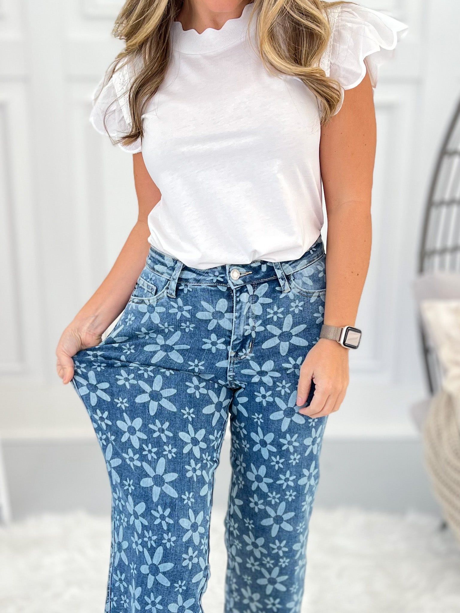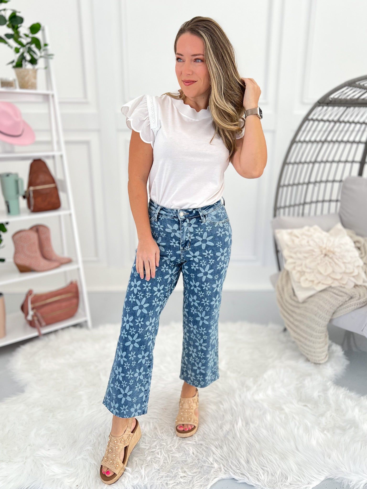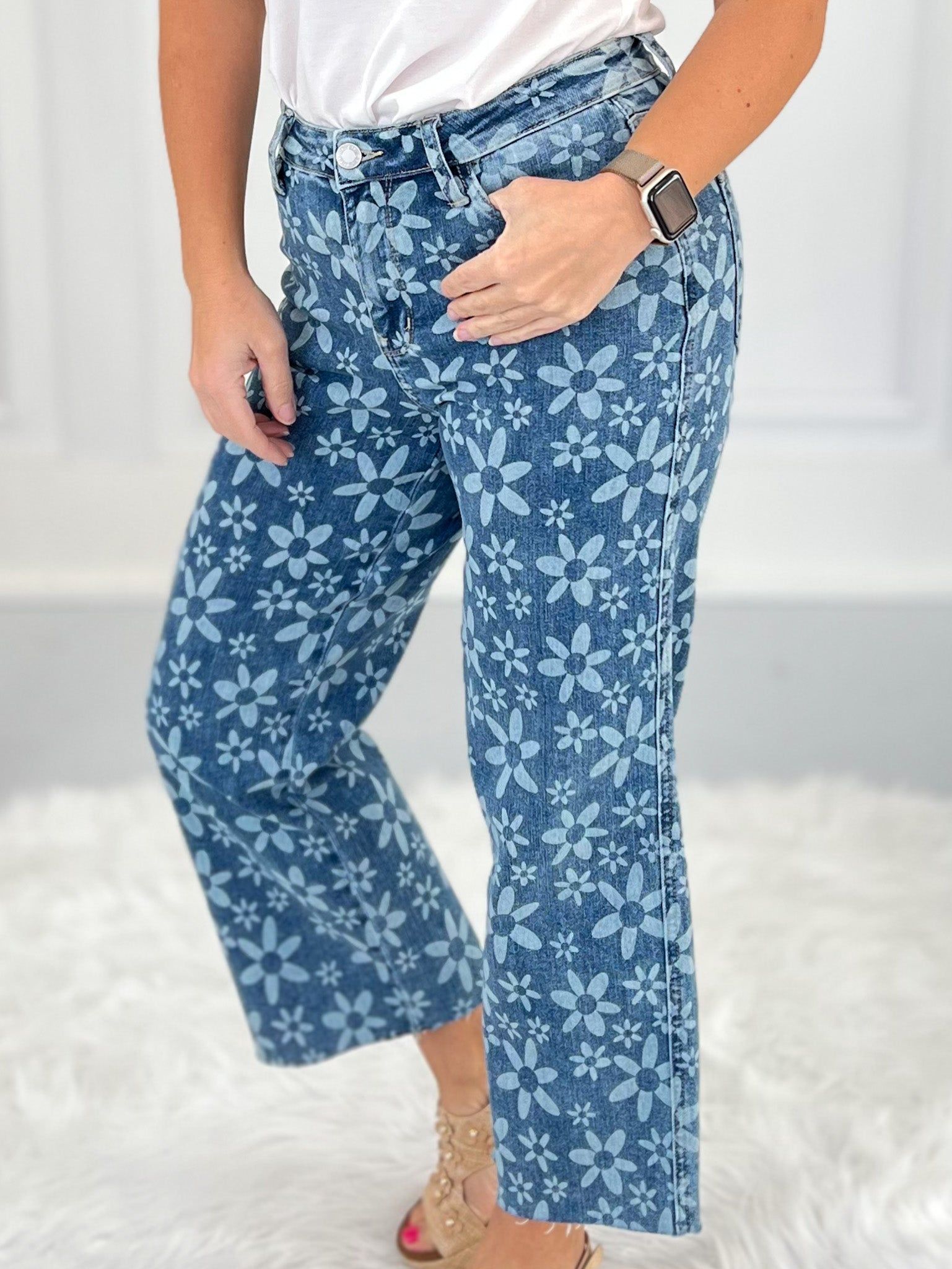 Bloom And Blues - Judy Blue Wide Leg Cropped Jeans - Final Sale