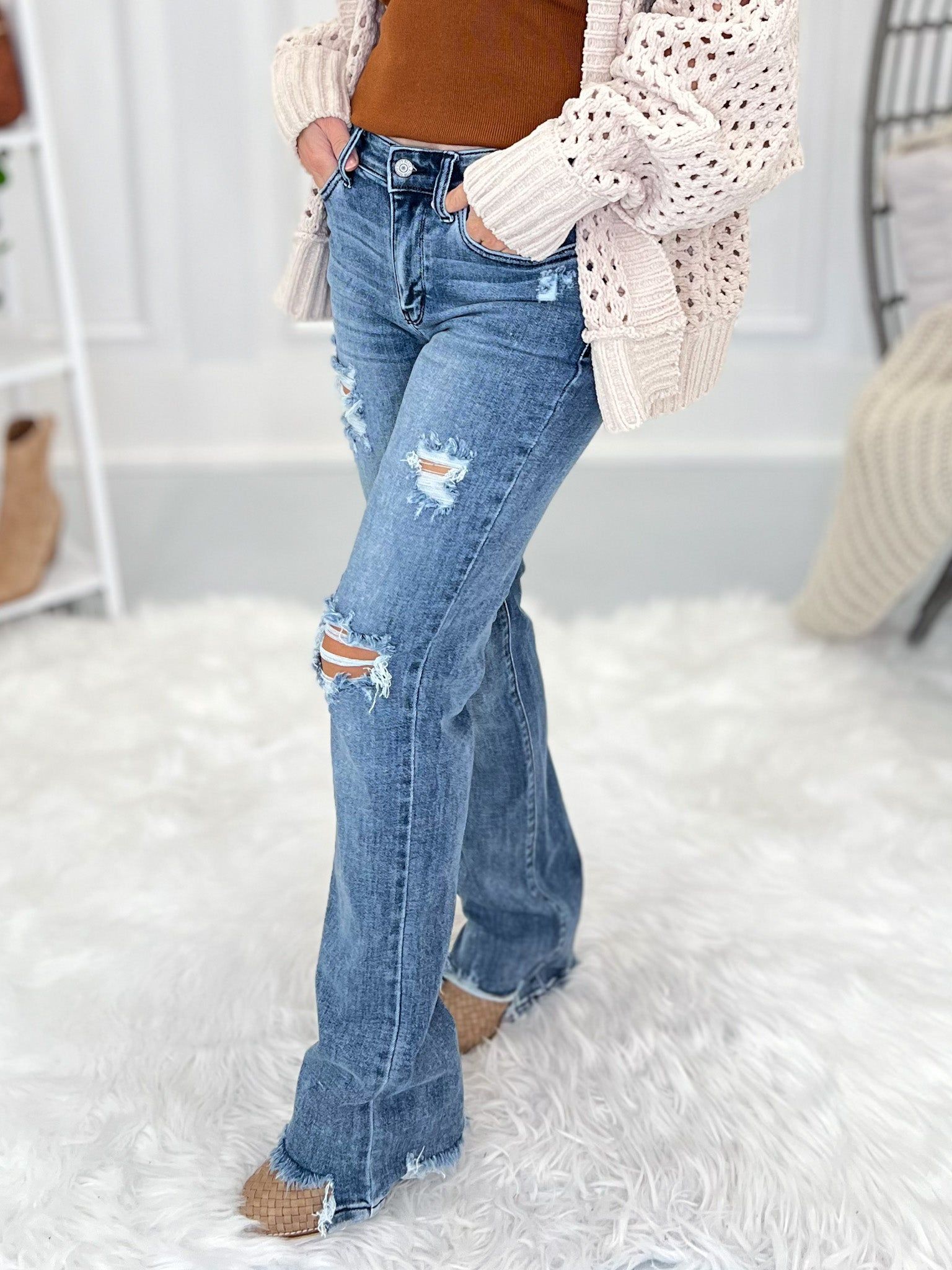 Commit To It - Judy Blue Destroyed Straight Leg Jeans - Final Sale