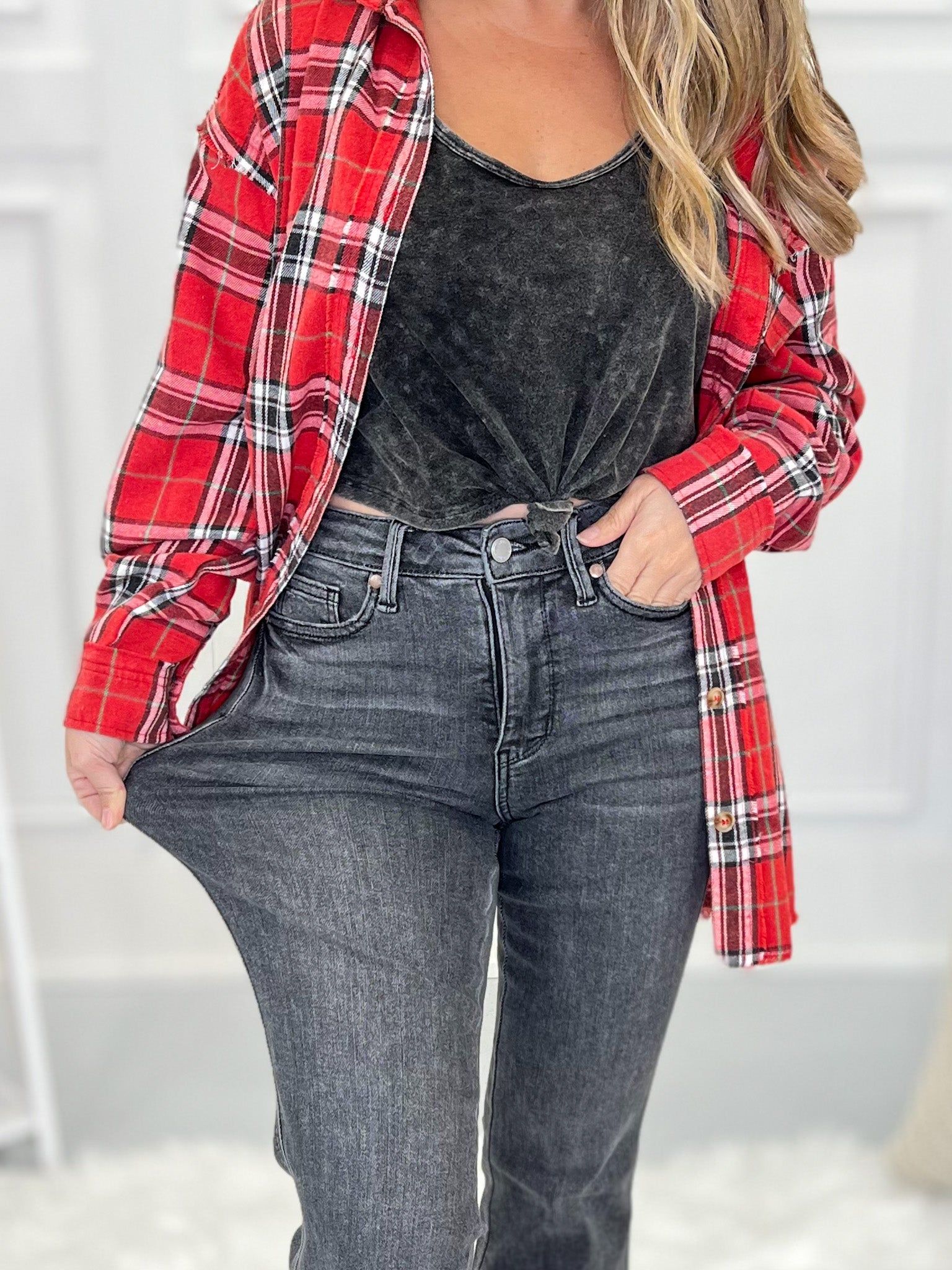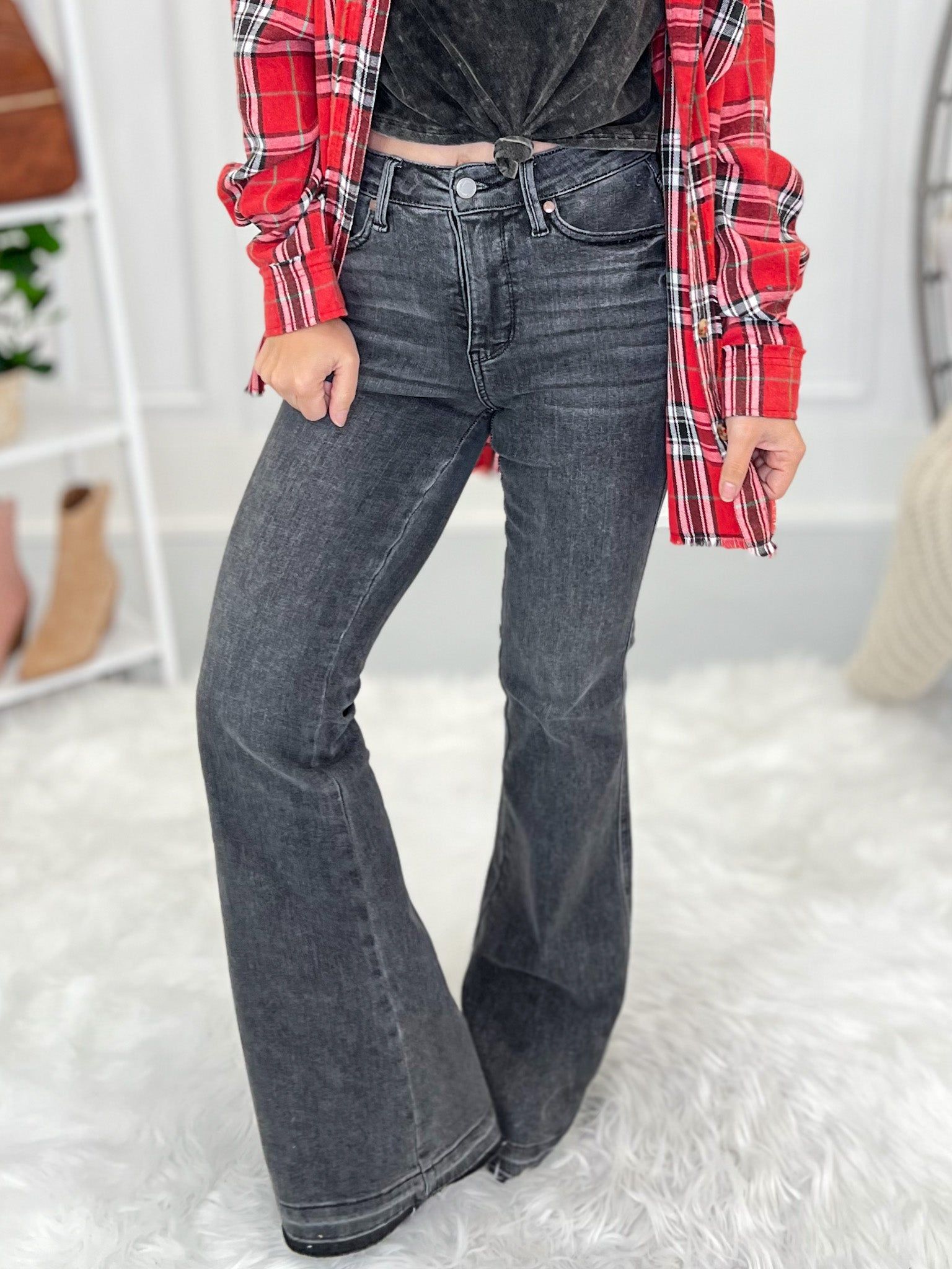 Double Dipped - Judy Blue Shadow Hem Flare Jeans - Final Sale