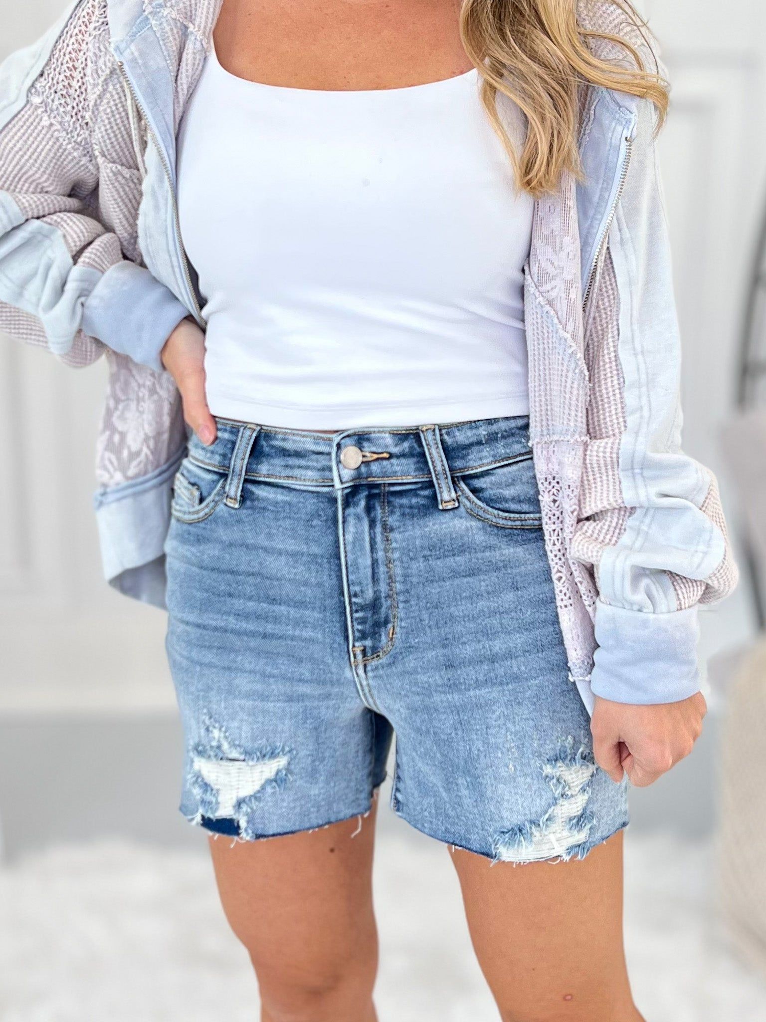 Edge Appeal - Judy Blue Stitched Over Distressed Shorts - Final Sale