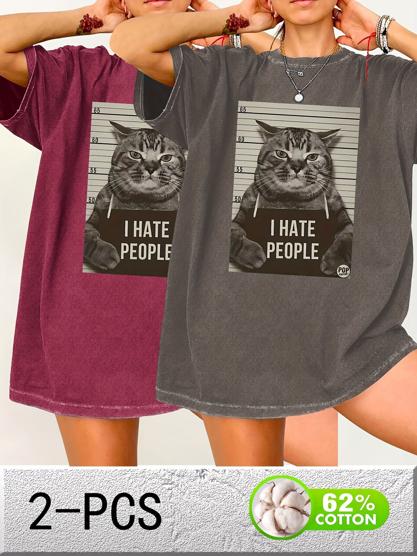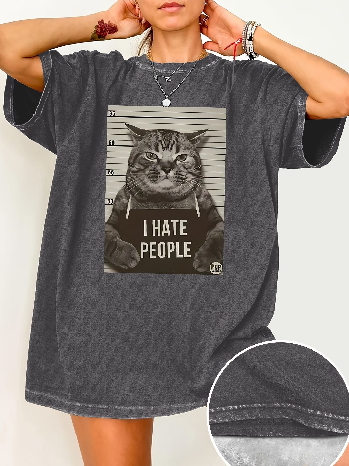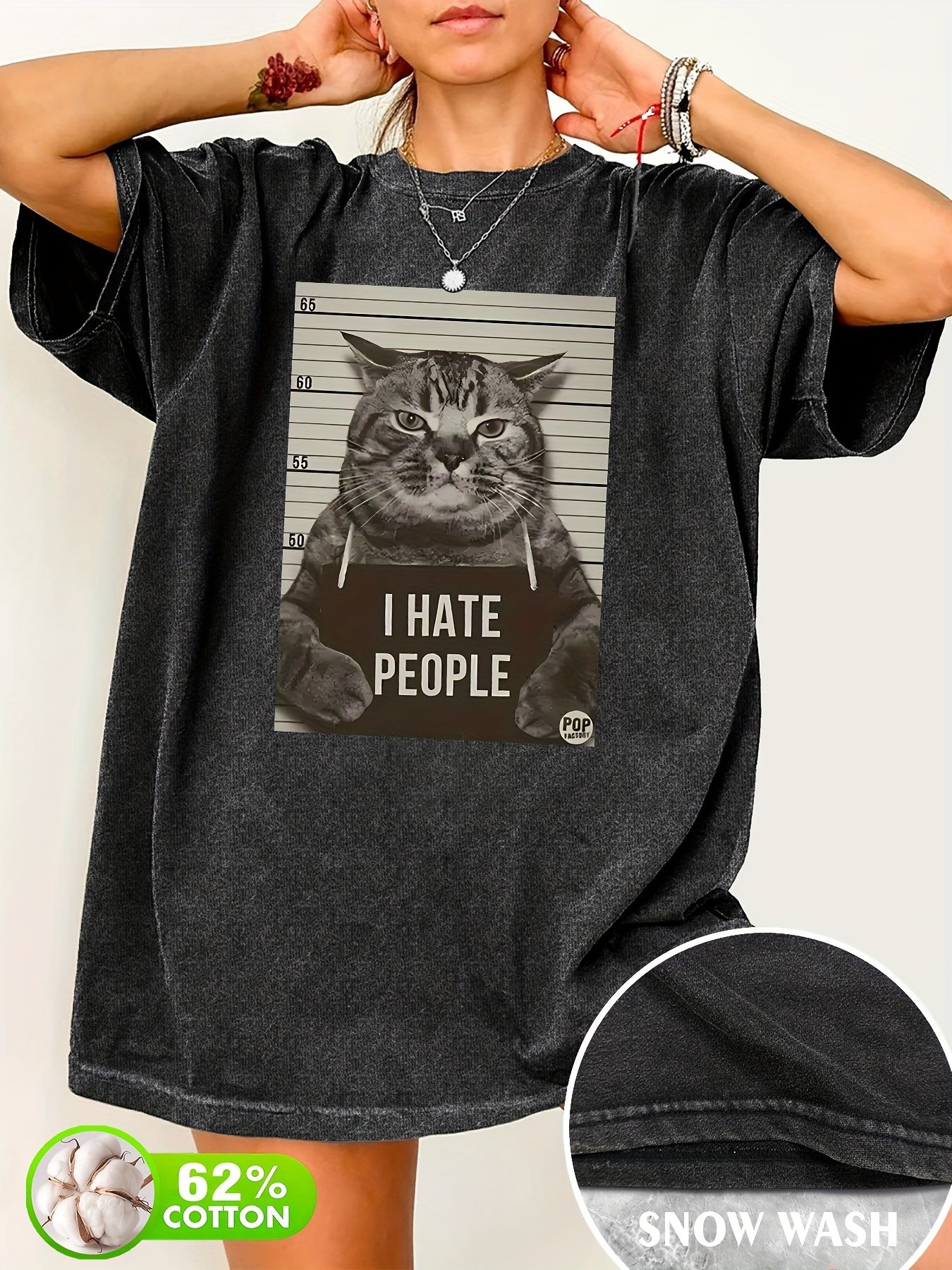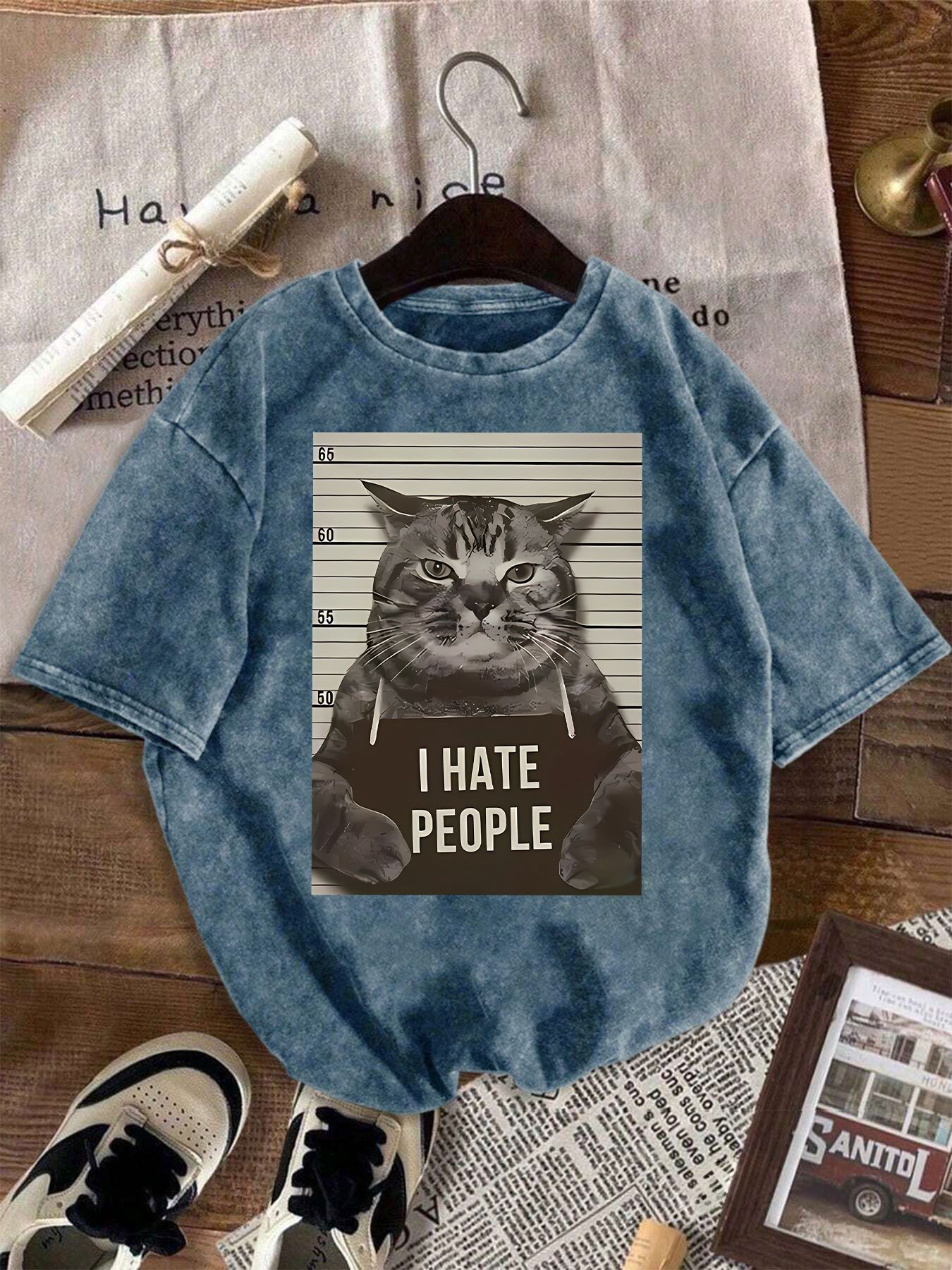 Cat Print Loose Round Neck Fashion Women's Wash Short Sleeve