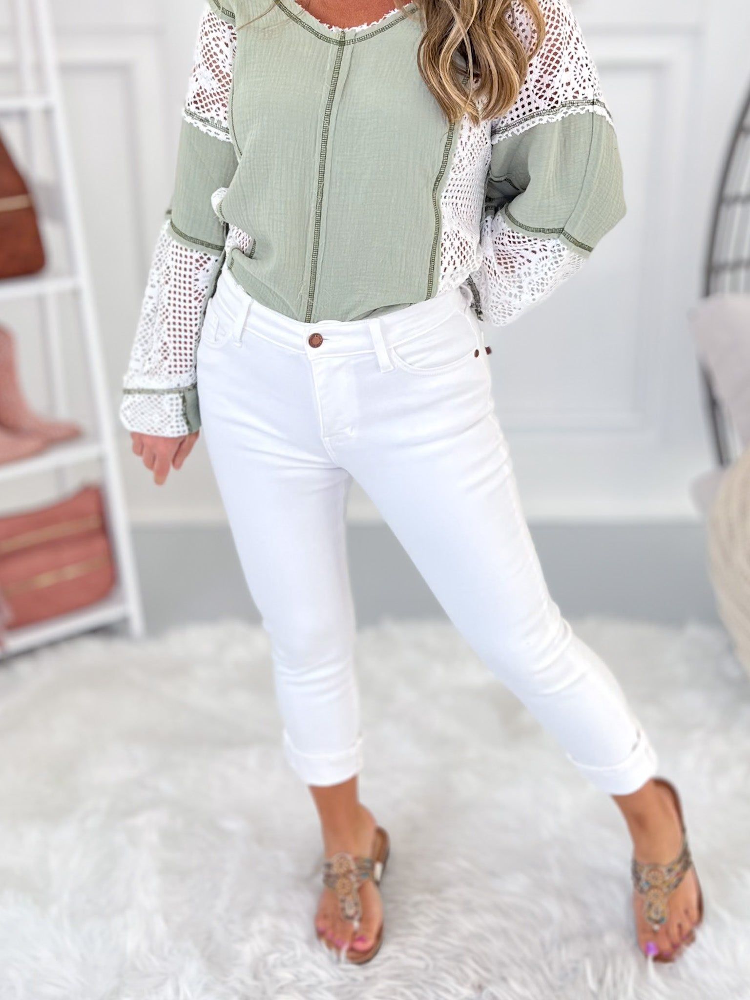 Hot Take - Judy Blue Cuffed White Capri - Final Sale