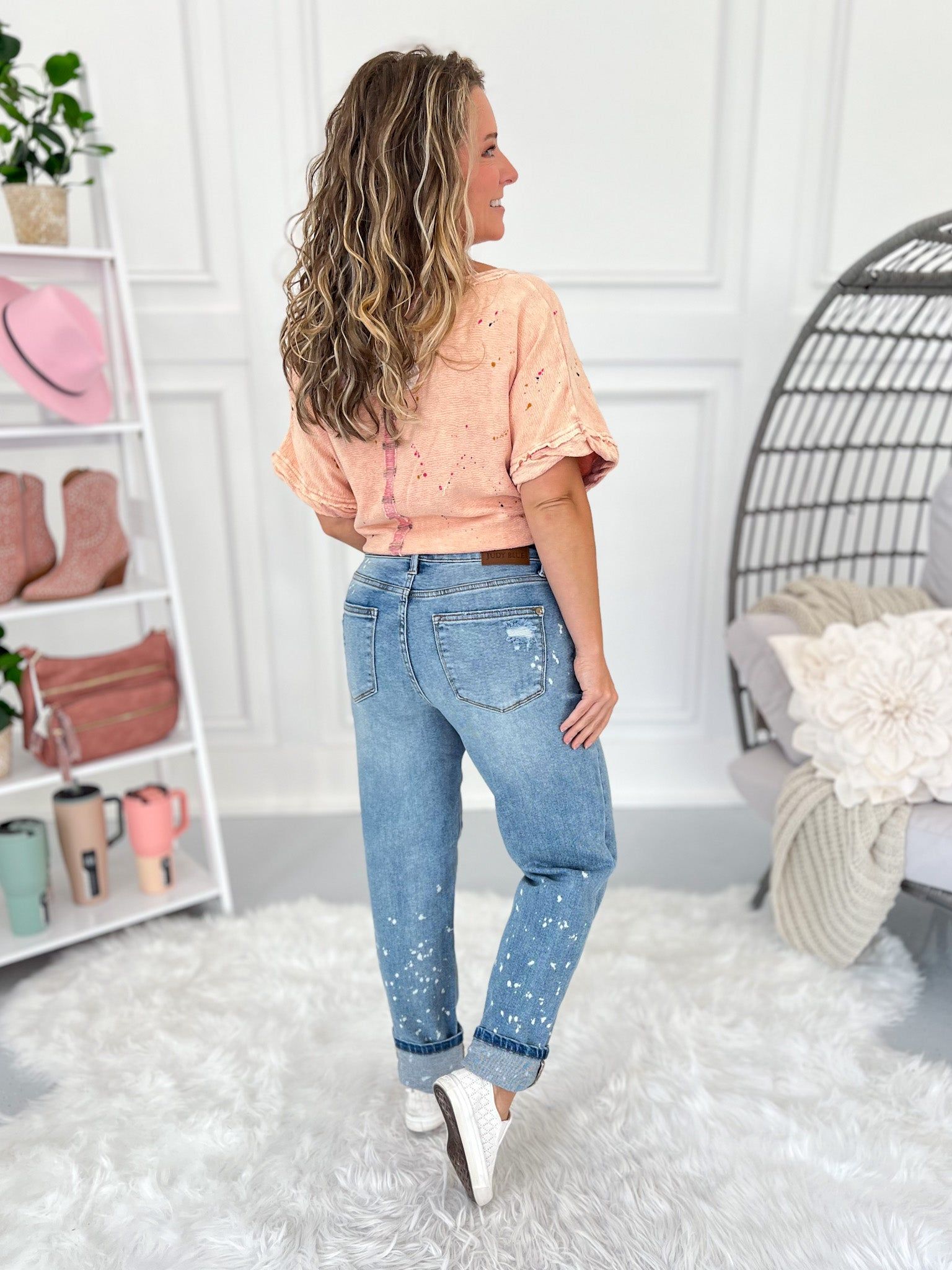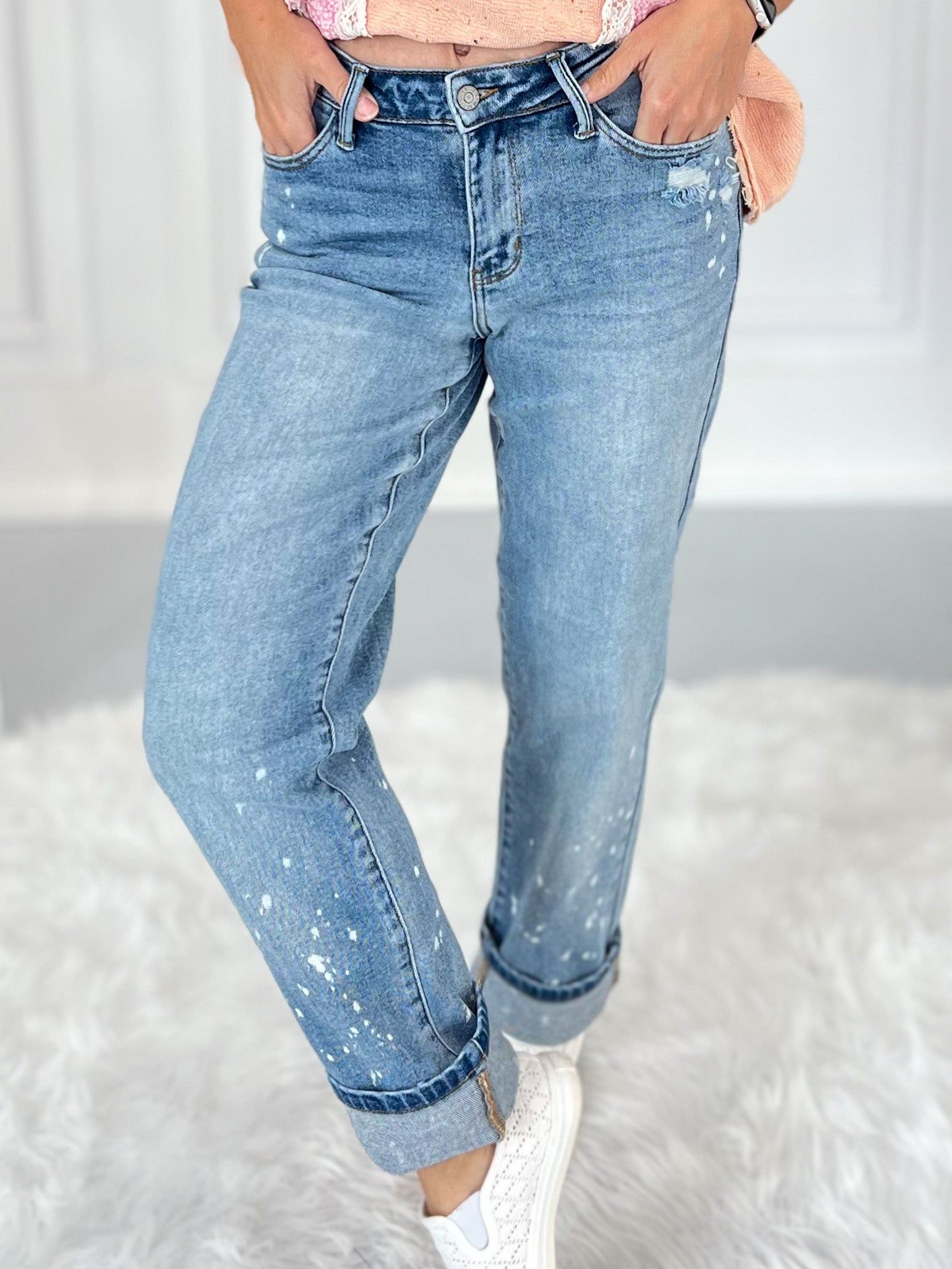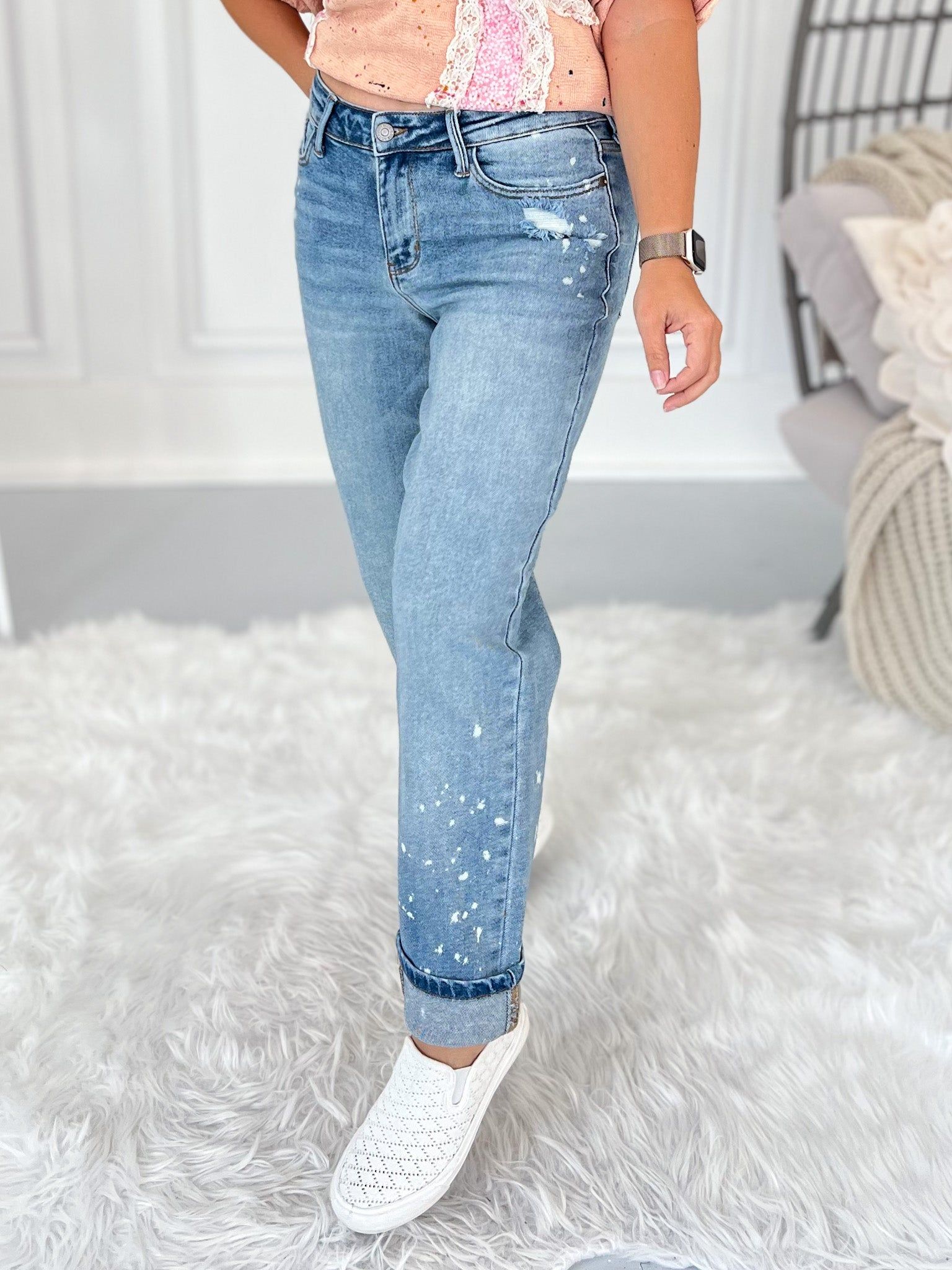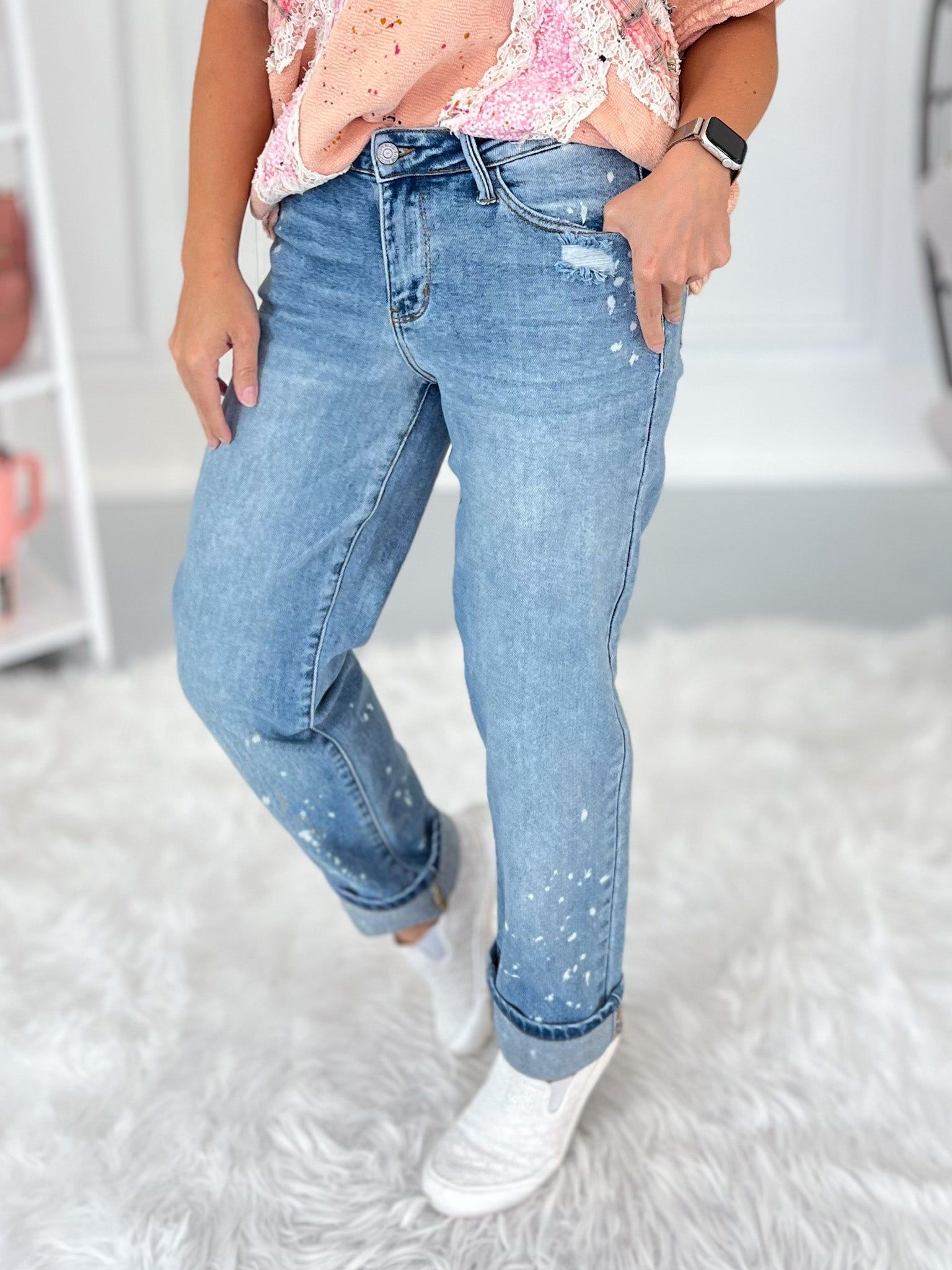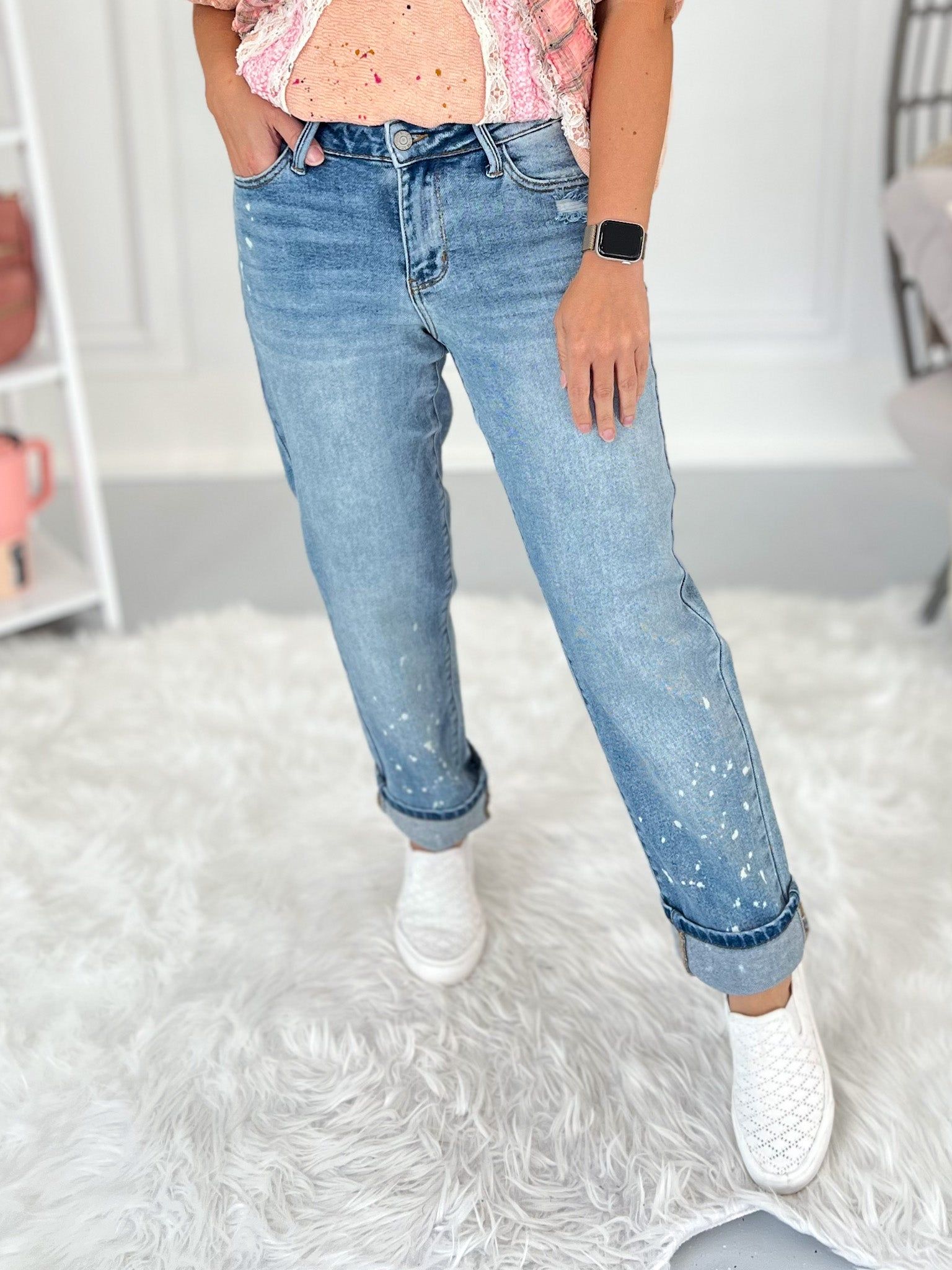 Dial It Back - Judy Blue Bleach Splatter Cuffed Boyfriend Jean