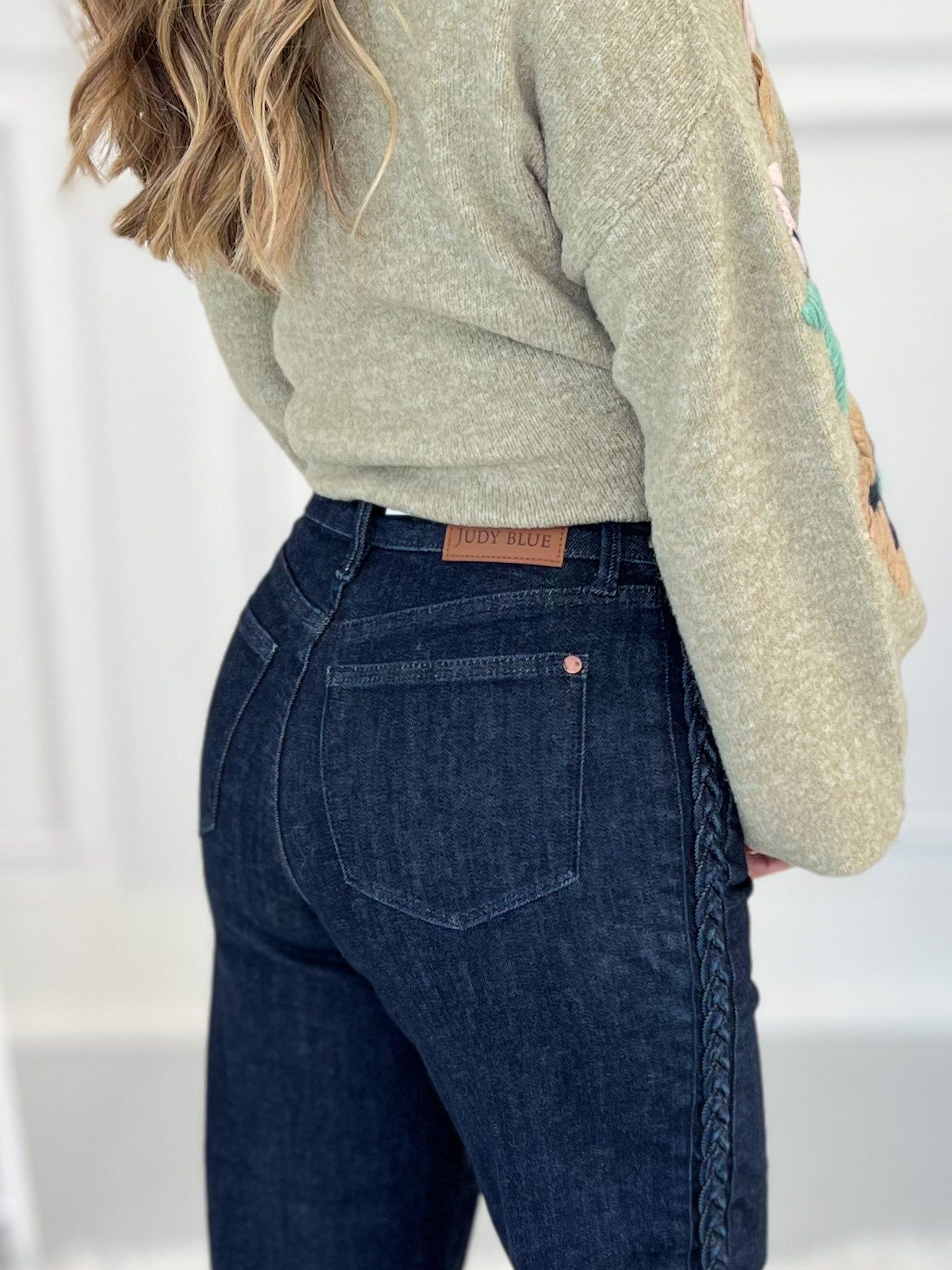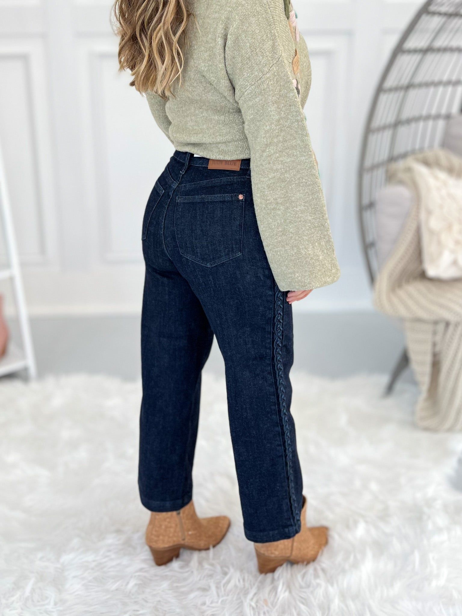 Short And Sweet - Judy Blue Braided Side Seam Cropped Wide Jeans - Final Sale