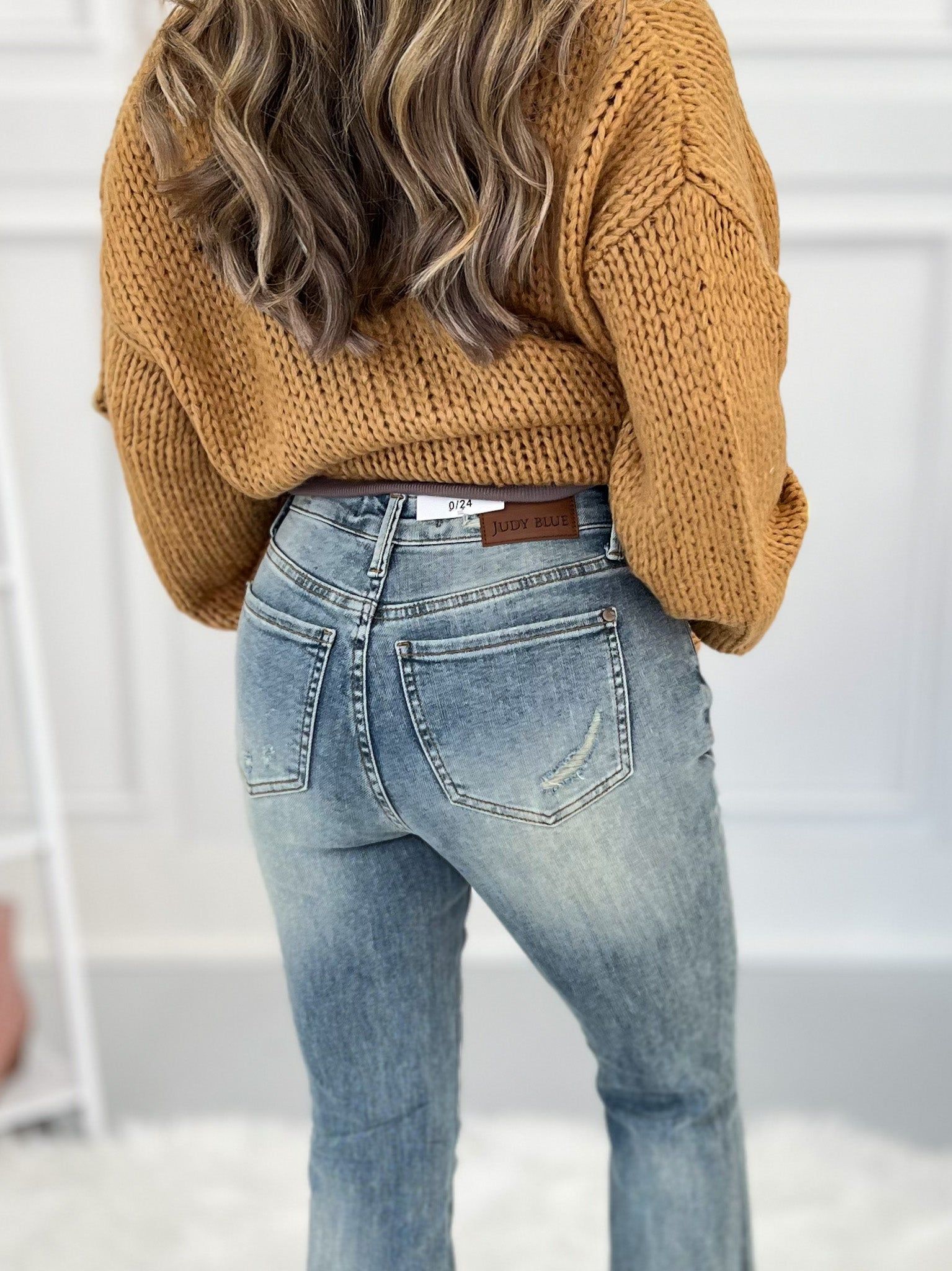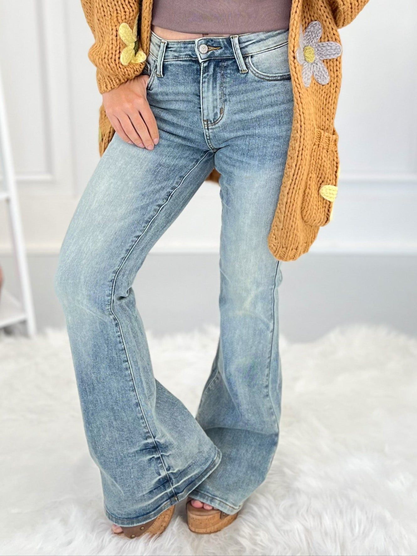 Just The Right Shade - Judy Blue Tinted Pin Tack Detail Flare Jeans - Final Sale