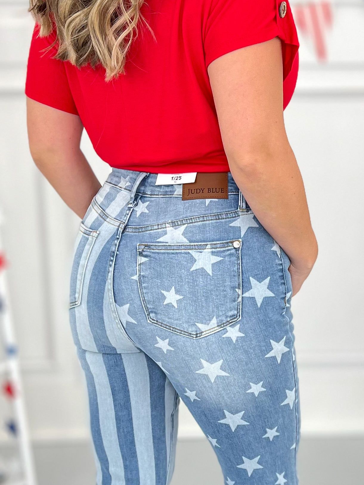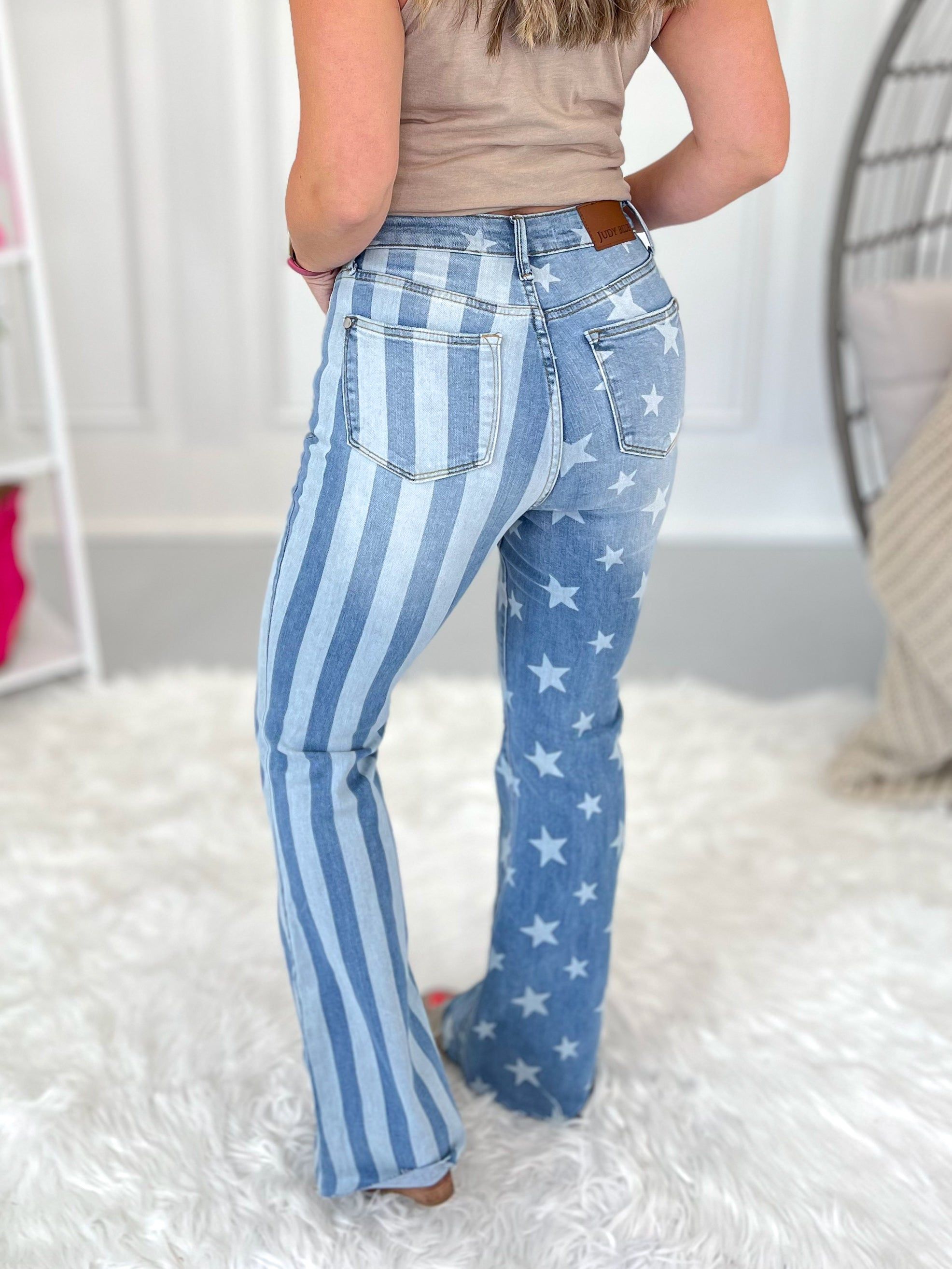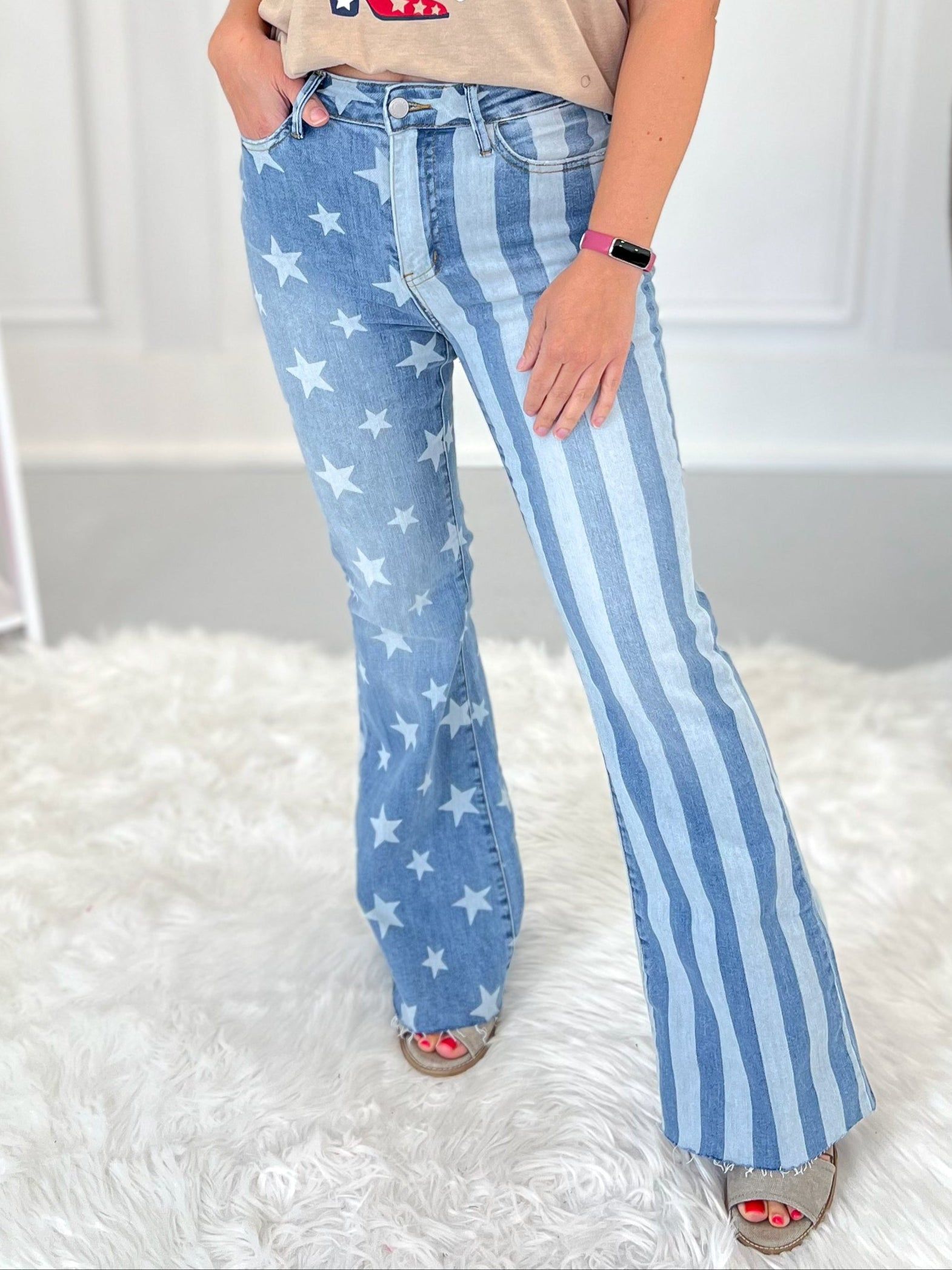 The Stars And Stripes - Judy Blue Bleached Flare Jeans - Final Sale