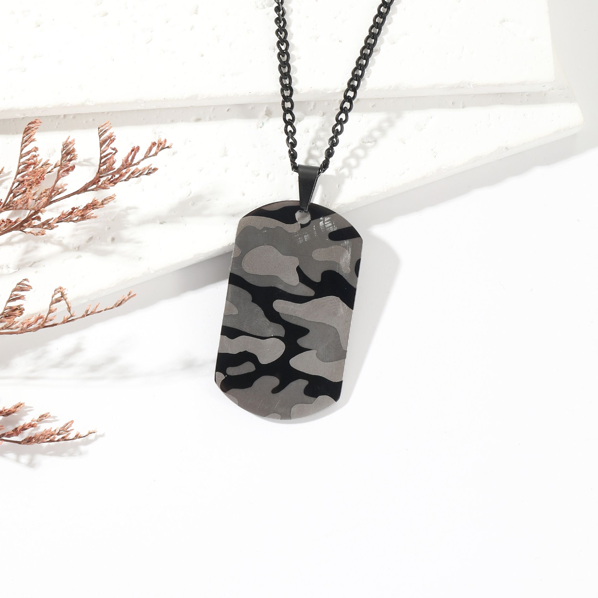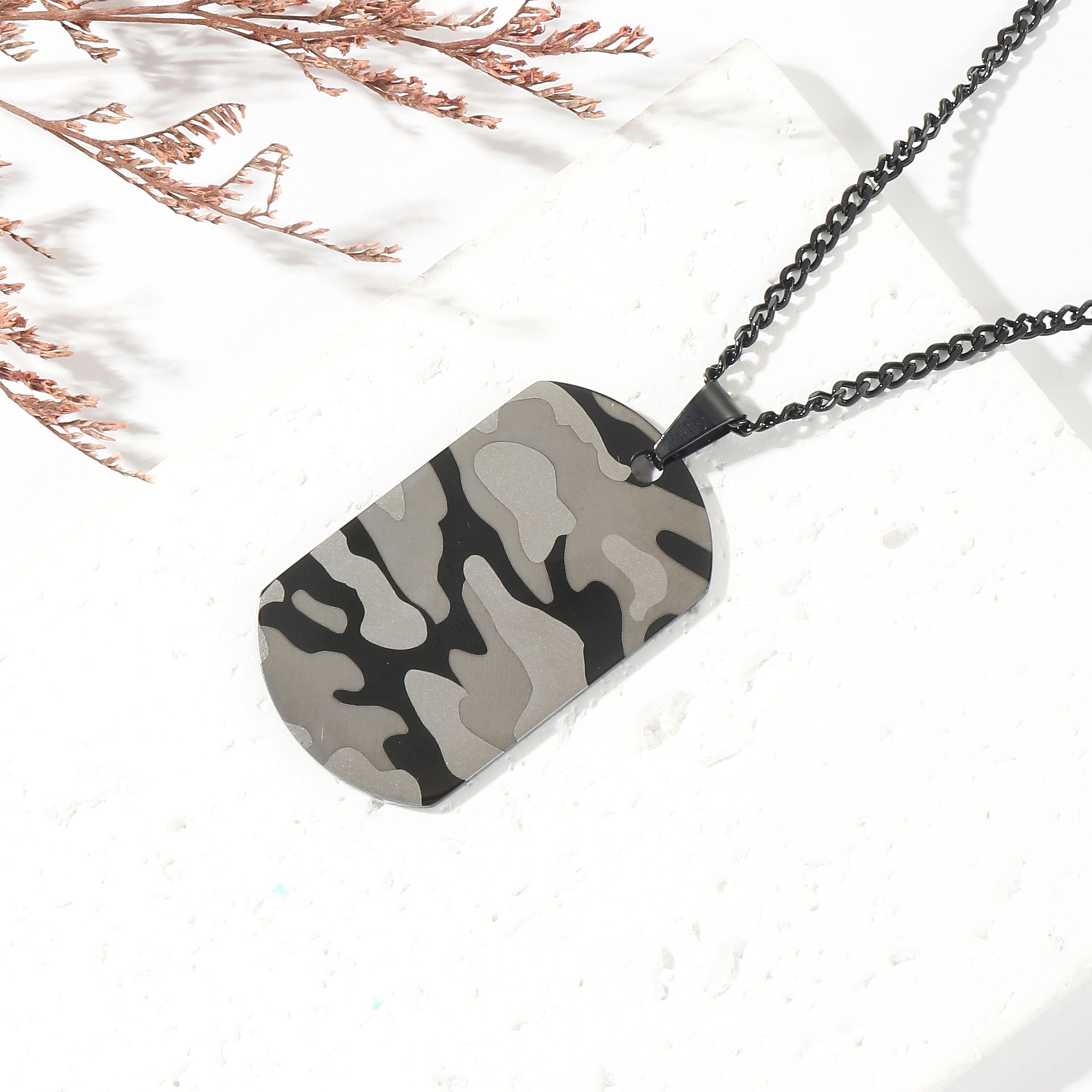 Military Camouflage Oval Men's Necklace