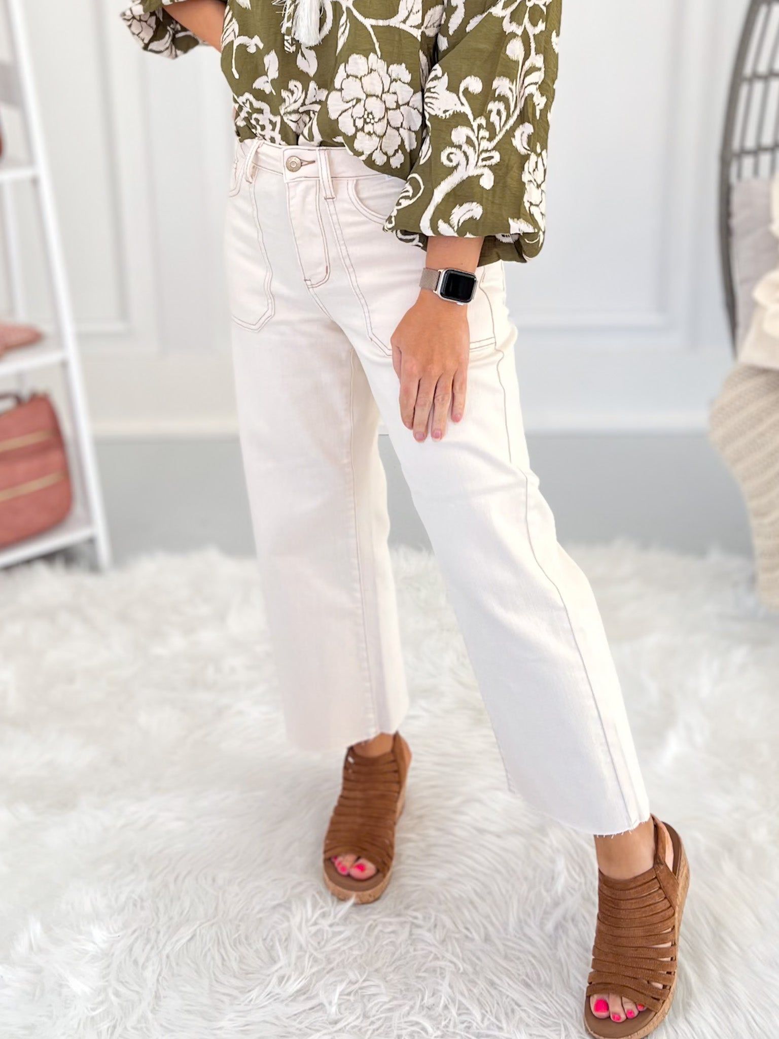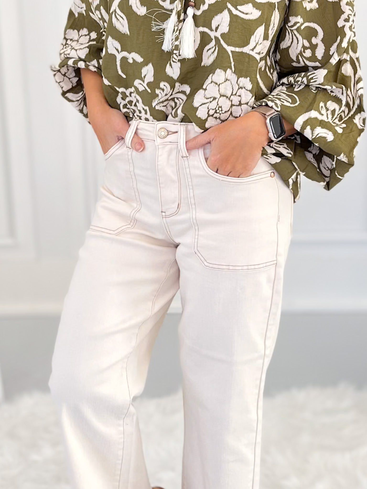 Milky Way - Judy Blue Ecru Wide Leg Cropped Jeans - Final Sale