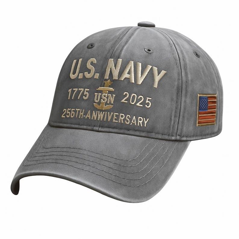 Navy Veteran 250th Anniversary Embroidered Trucker Hat Us Navy 1775 2025 Vintage Washed Cotton Cap