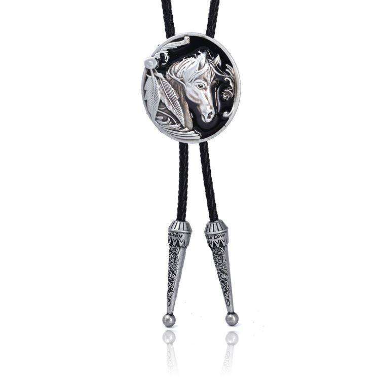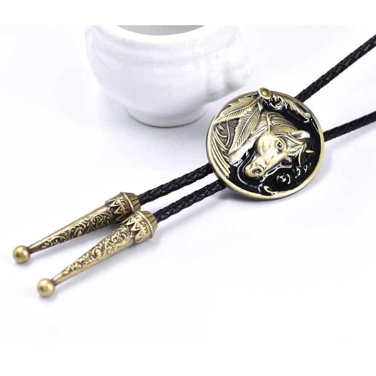 Punk leather lapel tie, vintage horse style zinc alloy leather necklace