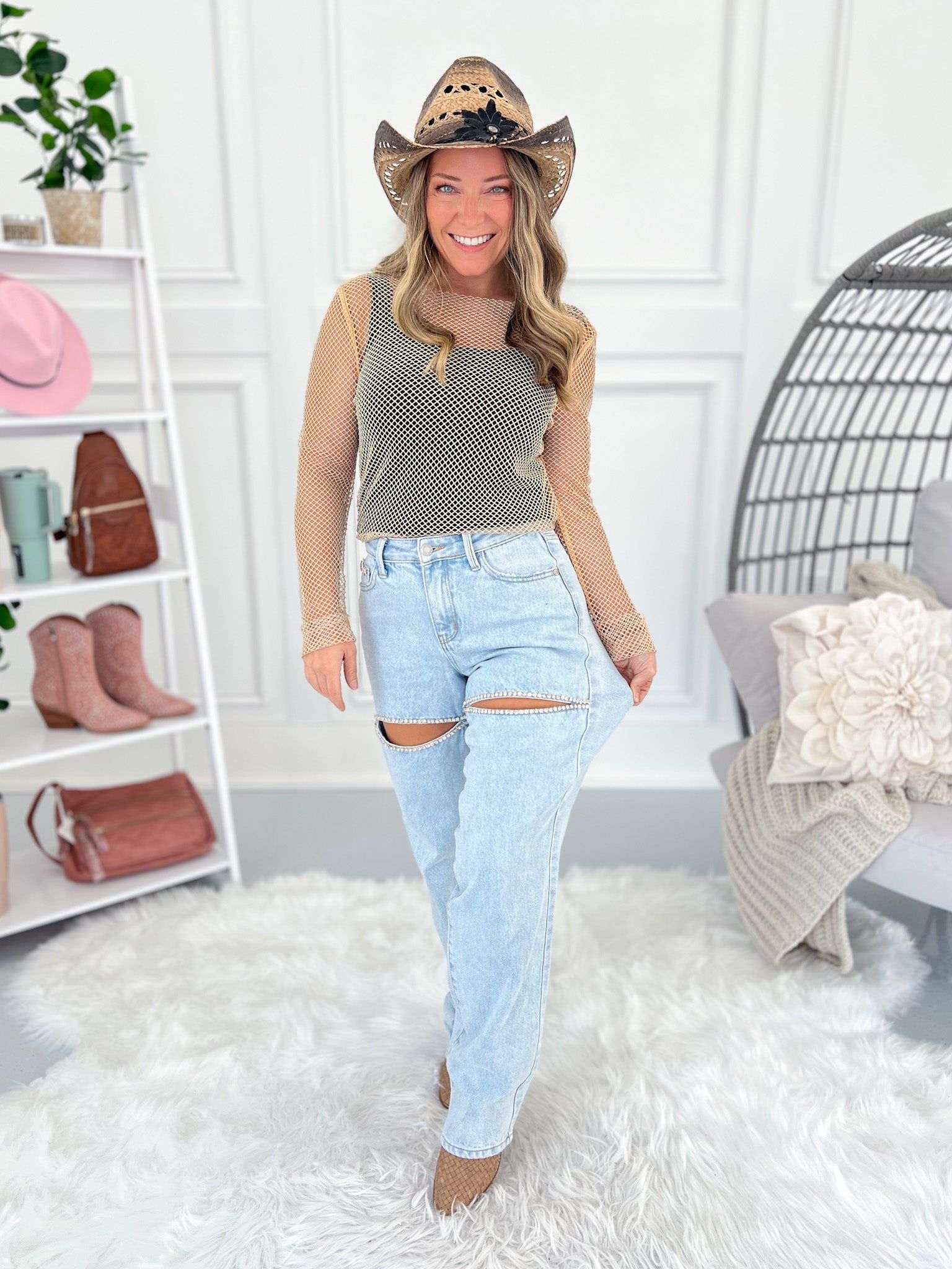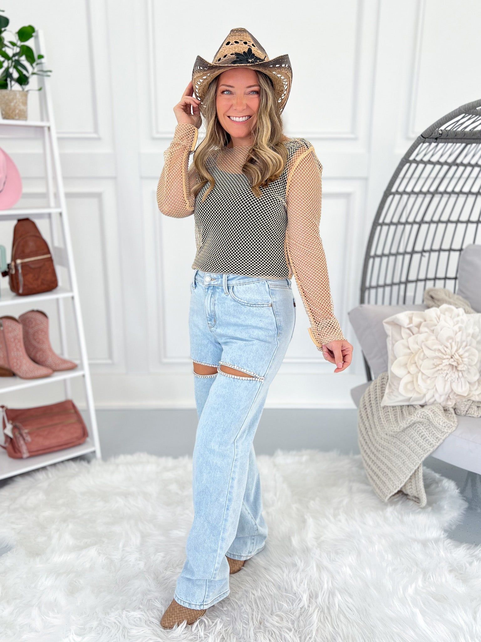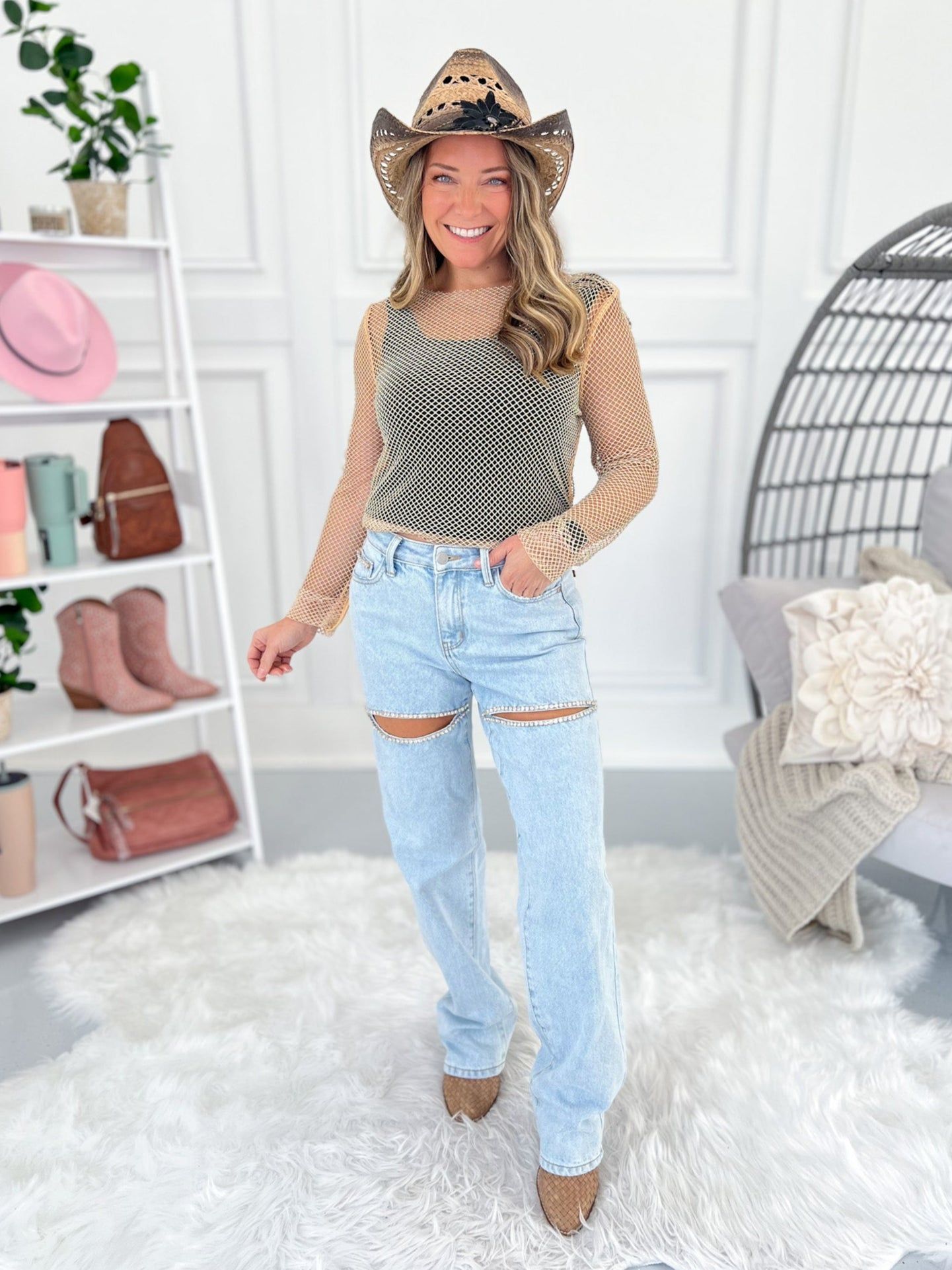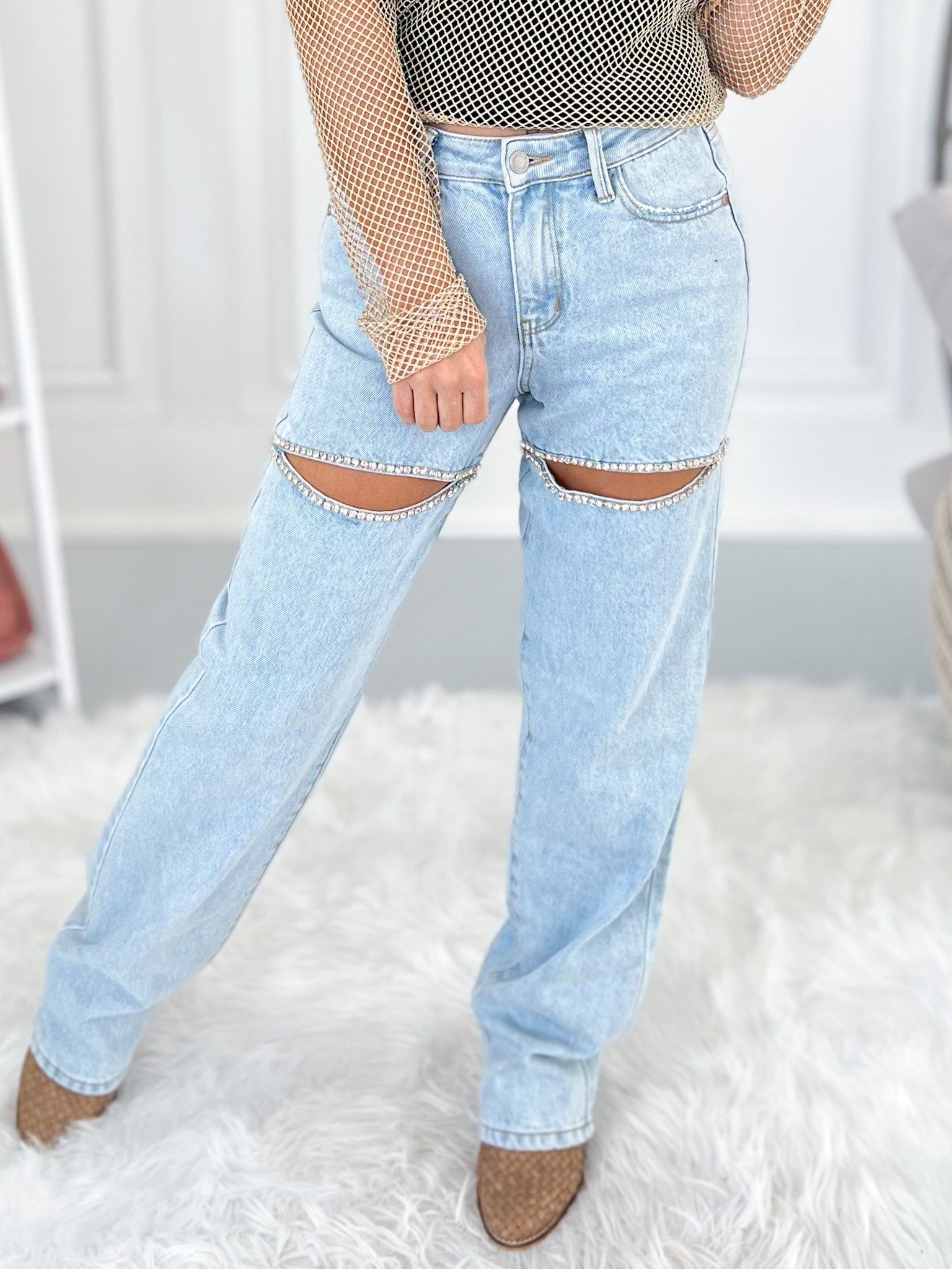 Shine On Me - Judy Blue Rigid Magic Rhinestone Slit Detail Straight Jeans - Final Sale