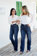 Judy Vintage Double Button Frayed Hem Bootcut Jeans (Buy 2 Free Shipping)