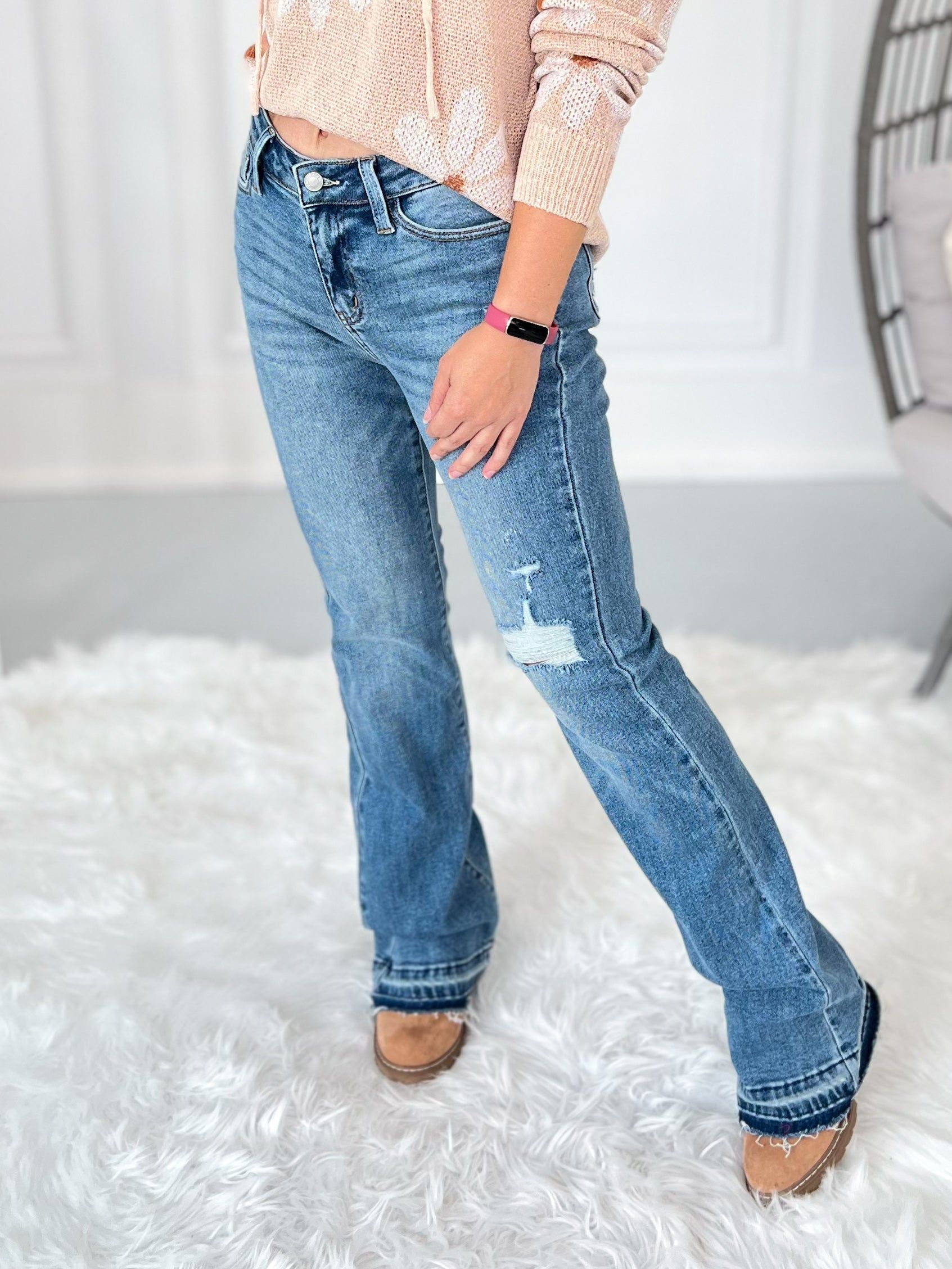 Walk It Out - Judy Blue Release Hem Bootcut Jeans - Final Sale