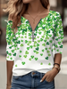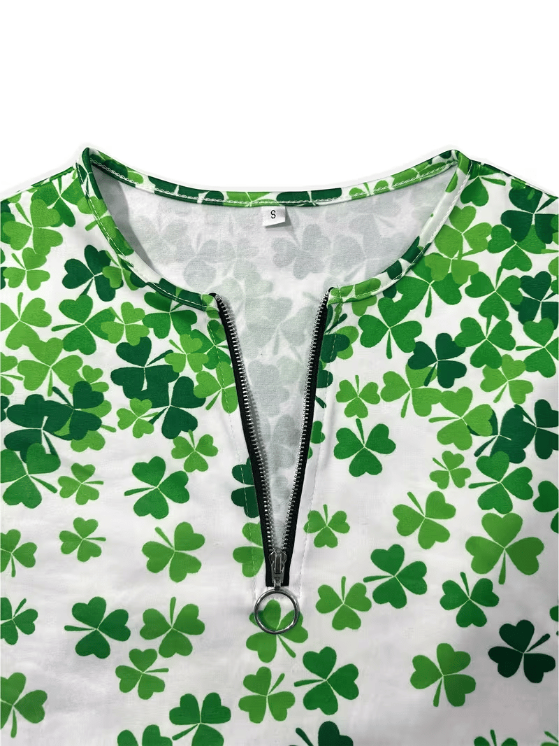 Women's St. Patrick's Day Print Half Zip Casual Long Sleeve Top