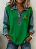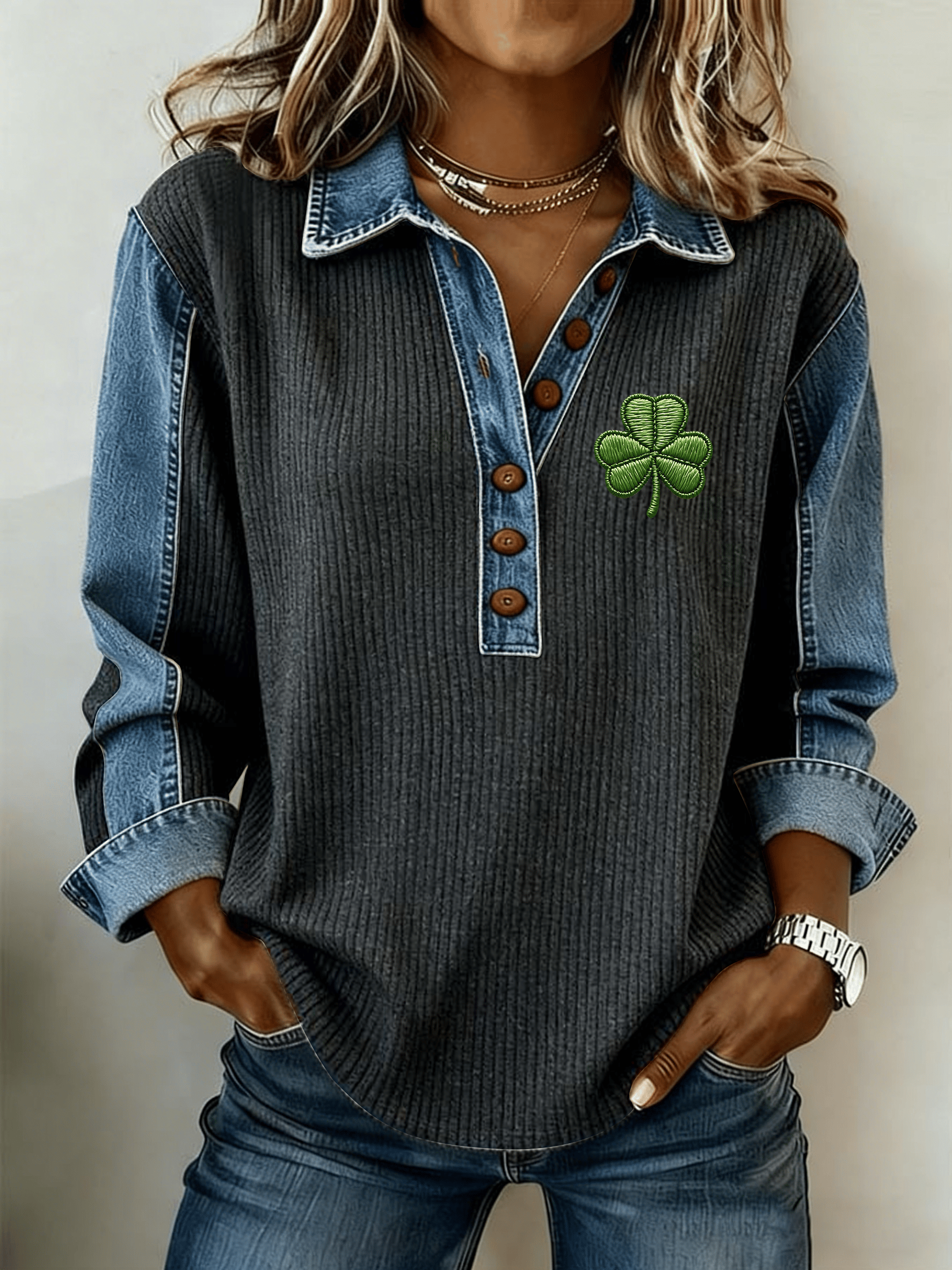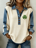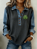 Women's St. Patrick's Day Printed Collar Button-Down Knit Top