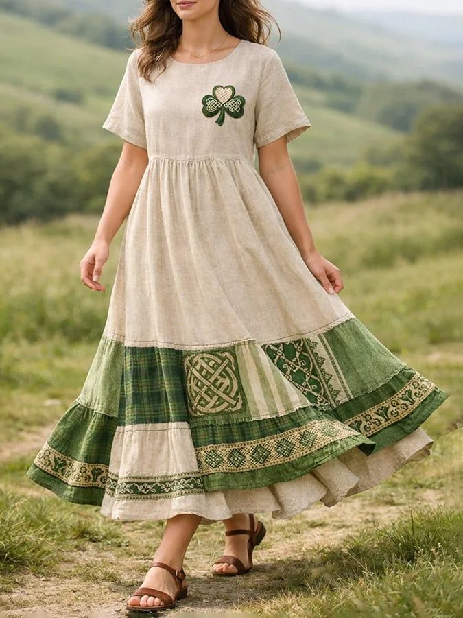 Women'S St. Patrick'S Day Shamrock Print Patchwork Dress