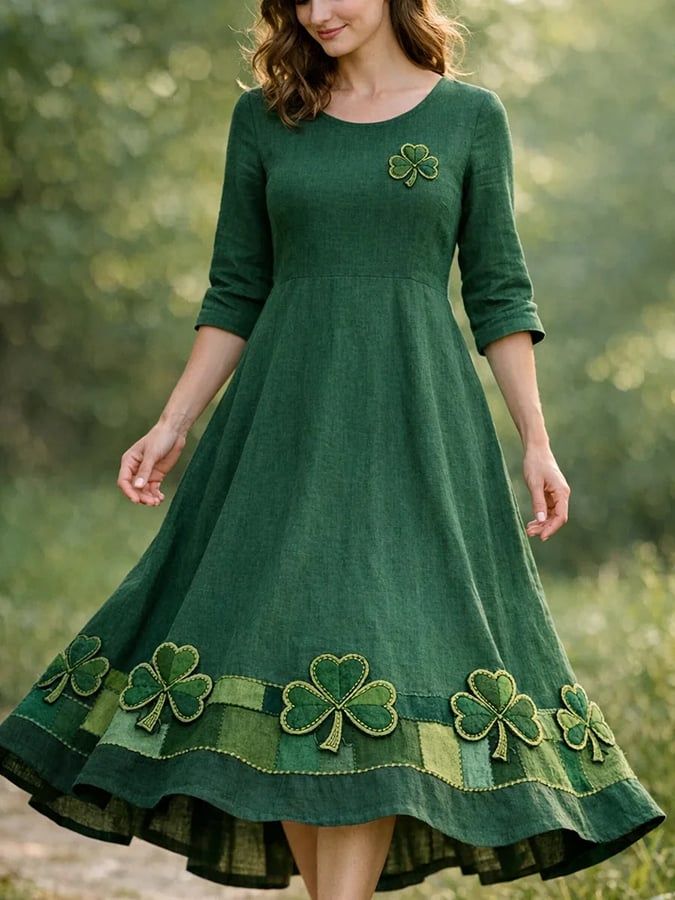 Women'S St. Patrick'S Day Shamrock Print Patchwork Dress